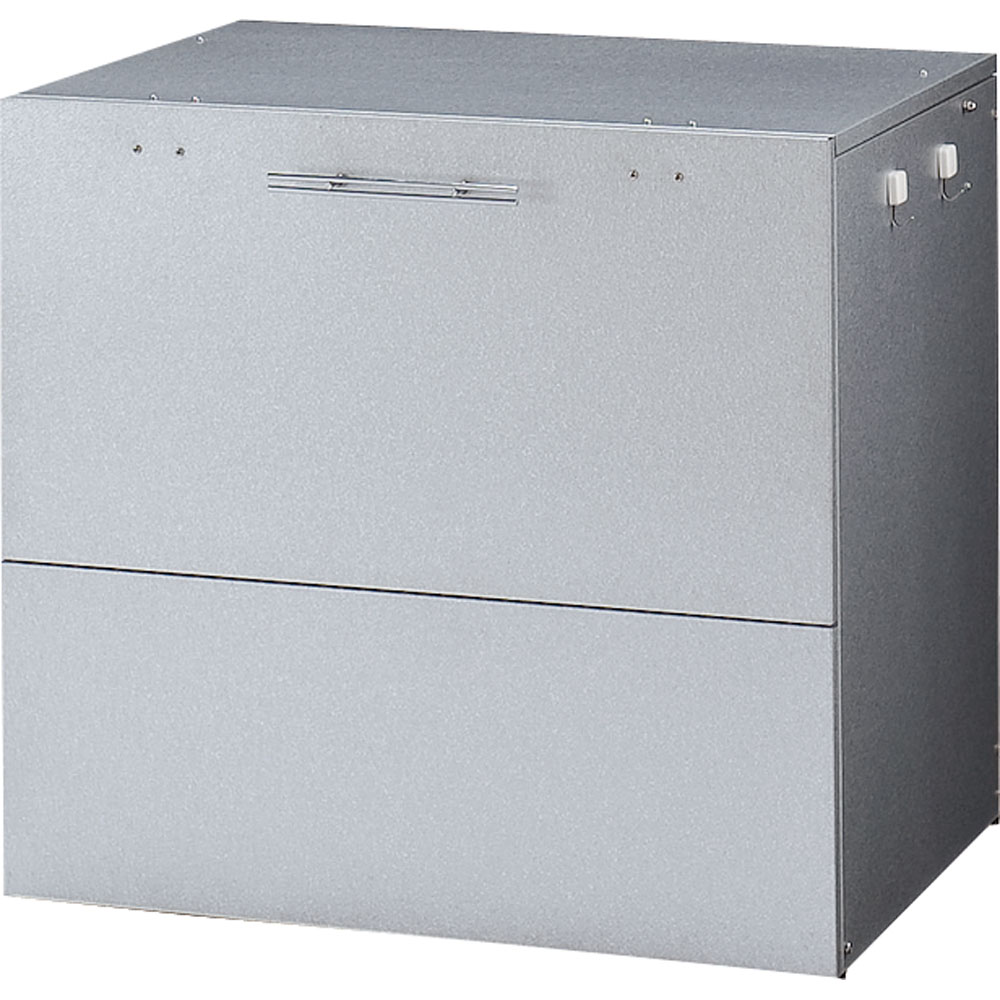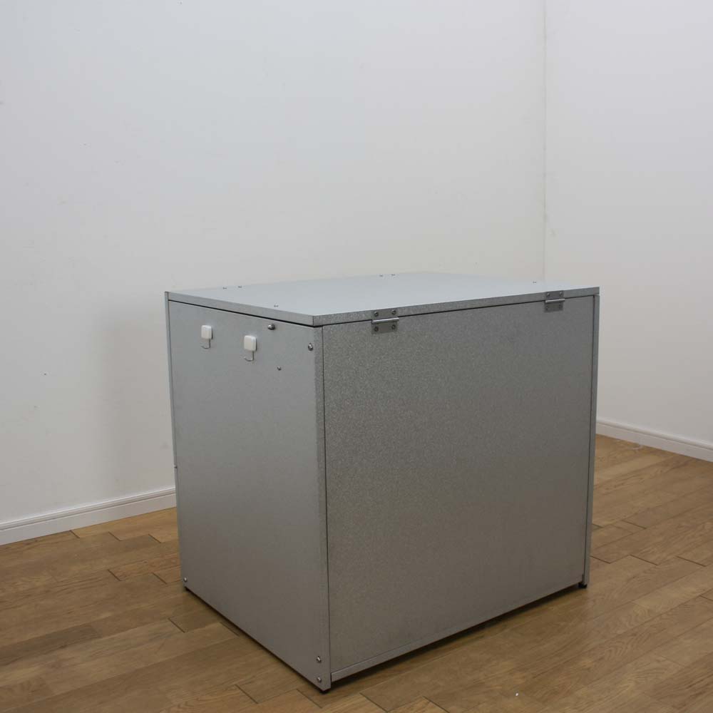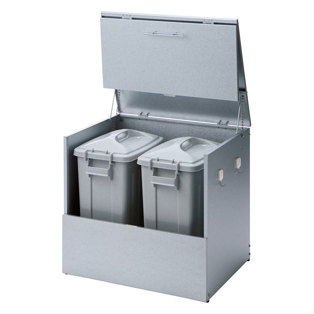 ※スチール製品は素材の特性上、経年変化でサビが発生致します。長くお使い頂くために、お届け直後の錆止め材の塗布をお薦めしております。 また、ご使用開始後も定期的なお手入れをお薦めします。(お手入れ方法&取り付け方法)おうちの顔である玄関先に、スタイリッシュな屋外ダストボックス。大容量のダストストッカーで、あふれがちな分別ごみに指定席をつくる屋外ゴミ箱です。玄関先や勝手口に、スタイリッシュな屋外ダストボックスゴミの分別が進んだ地域では、ゴミの収集待ちも頭の痛い問題。なかなかめぐってこない資源ごみの待機場所、屋外ボックスで解決しませんか?大容量のダストストッカーで、あふれがちな分別ごみに指定席をつくります。外からの目線が気にならないデザイン家の外に置くダストボックスは、意外とご近所の視線にさらされます。玄関先や勝手口脇など、外からの目線が気になるゴミ箱(ダストボックス)は、スタイリッシュなモデルがおすすめ。ガーデンやエントランスに違和感のない屋外用ストッカーで、ダスト待機の指定席を。ガーデニング好きの方におすすめしたい、情景になじむデザインが自慢です。ゴミの出し入れのしやすさを第一に考えました前面と天板が連動して「がばっ」と大きく開きます。大きな開口部で、かがまなくてもゴミを出し入れできます。ごみの出し入れ簡単。ワイドオープンタイプなので、ガレージ内の壁際や通路脇の狭いスペースでも開閉OK。種別に分別したゴミも余裕で待機できる、大容量が自慢です。素材や機能にもこだわり満載耐候性や耐腐食性に優れたガルバリウム鋼を使用したシンプルな収納庫です。付属のマグネットフックで効率的に収納できます。ほうきやチリトリなど勝手口まわりの用品を一か所にまとめておけます。脚部にはアジャスター付き設置時のガタツキを抑えるアジャスターが付いています。設置場所に傾斜がある場合も、ストッカーを水平に設置できます。プラスチックペールでニオイ対策密閉性をより高めるプラスチックペール付き。ボックス内にセットできるプラスチック製ペールを2個セット。ペールには臭い漏れを防ぐため、パッキン付きのフタを設けました。付属のペールは、単体でご使用の際は付属のキャスターがお使いいただけます。お庭づくりを支えるエクステリア収納ガーデニング雑貨やベランダ用品もたっぷり収納できます。設置場所や条件に合わせた物置き収納庫をチョイスして、快適なエクステリアの収納プランを。【信頼と安心の国内工場での生産品】管理の行き届いた日本国内の工場で、加工から製造、梱包に至るまで丁寧に仕上げました。細部の丁寧な仕上がり、国産品ならではの品質は自信を持っておすすめします。【ガルバリウム鋼板】アルミニウムを溶融した亜鉛合金メッキで表面処理し、耐久性耐熱性と防食作用を兼ねそなえた鋼板です。