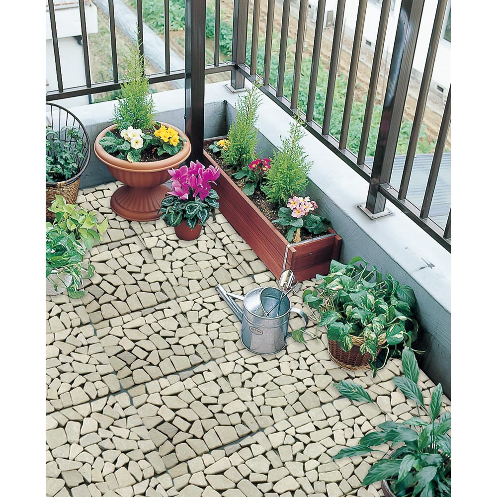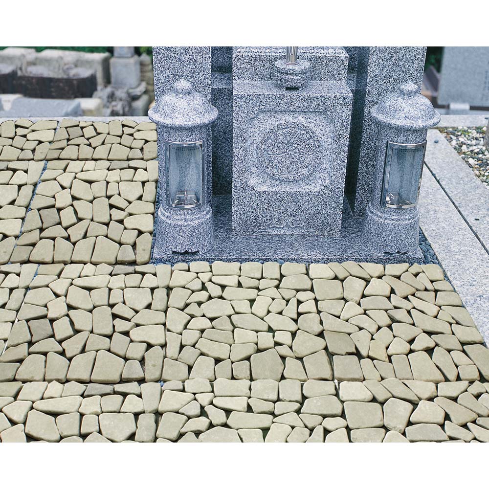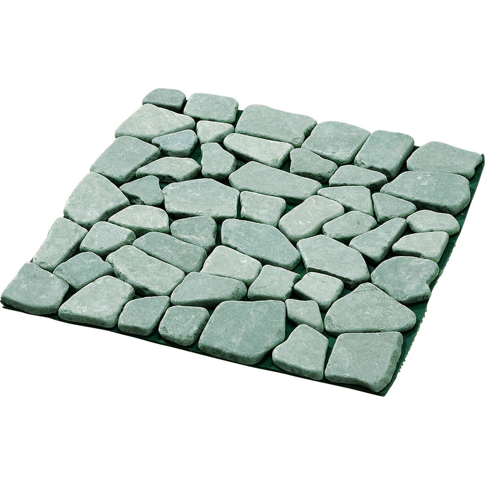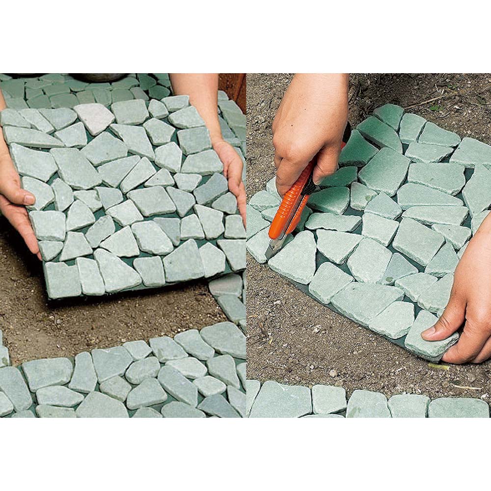 お庭の草抜きが大変!という方におススメ!雑草防止シートを裏張りした天然石のマット。敷くだけでめんどうな草むしりの手間が解消&お庭を美しく整えるます。庭にはびこる雑草の悩みを解決!◆何度手入れしても、何度でも生えてくるお庭の雑草。◆土壌部分を手軽に隠すマットタイプのペイピング材で「生えない対策」を!◆本来先に設置すべき雑草防止シートがすでに裏面に付いていて、設置も楽々。◆雑草の育成に必要な日光を99%以上カット、成長を阻止します。◆除草シートととして、除草剤などの薬剤を一切使用していないので環境にもやさしい。タイル状の天然石マットをただ敷き詰めるだけで、空間をおしゃれに変身!◆機能はもちろん、高級感のある見た目も大好評。◆石と石の間は簡単にカットできるので、設置するスペースに合わせて調節することができます◆一辺が約30cmの正方形マットで女性にも扱いやすく、簡単に設置できます。◆お庭はもちろん、玄関周りや裏庭、ベランダでもご使用いただけます。