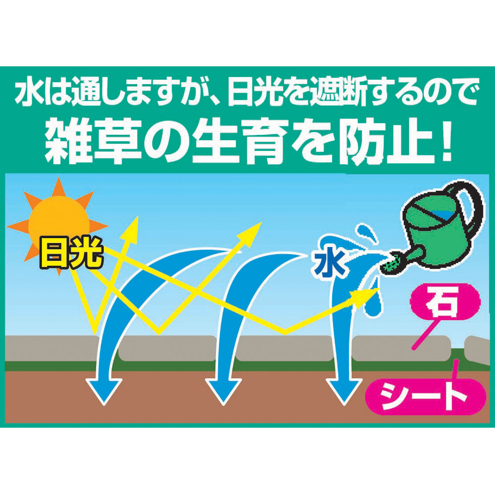 裏面のシートが日光を遮断し、雑草の生育を防止してくれます。