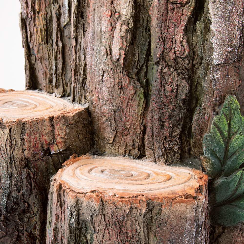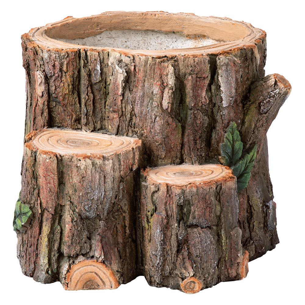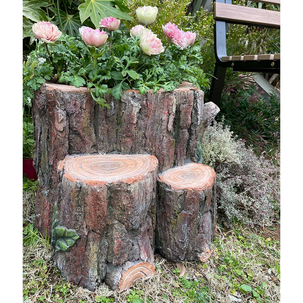 【切り株のプランター】前面の小中の切り株にはオーナメントが載せられます。