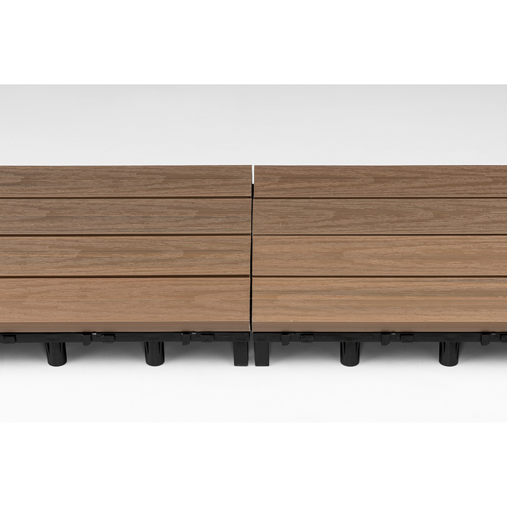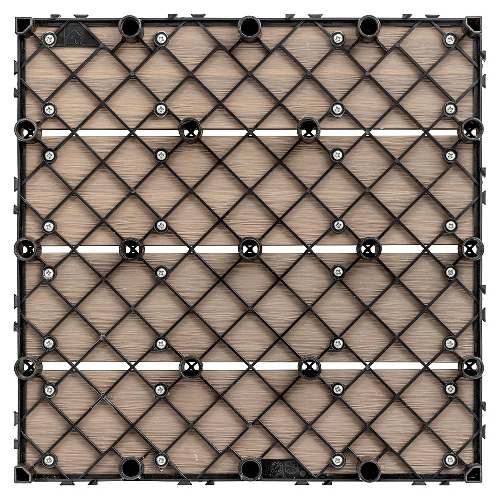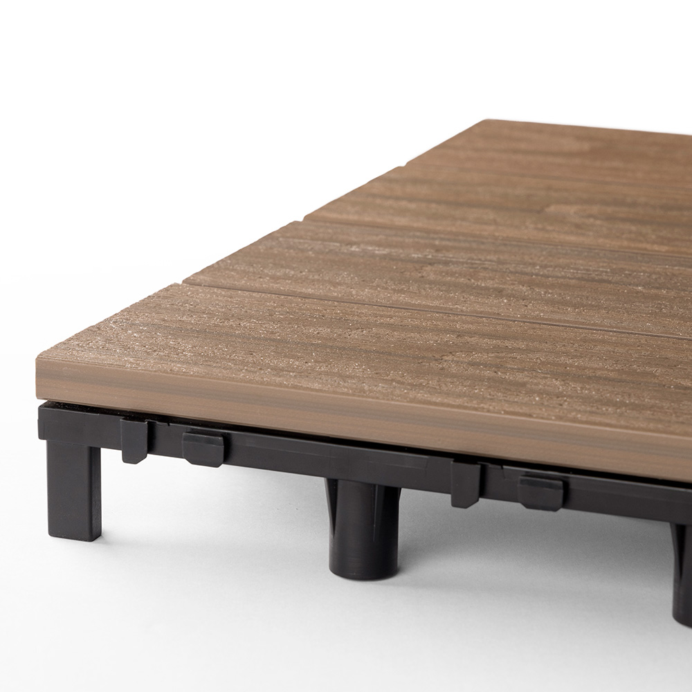 バルコニーの印象がアップする、お手入れ簡単なジョイント式人工木デッキの追加用18枚です。床下の高さが2.2cmあり、掃除もしやすく虫除け剤の設置も可能とメリットがたくさん!並べて敷き詰めるだけのジョイント式人工木デッキの追加セット。◆はめ込むだけで設置が簡単!床下の高さが2.2cmあるので、ゴミや枯れ葉がたまりにくく、排水性が抜群です。ホースを通して水掃除をしたり、害虫対策の忌避剤等を置けるスペースも確保できます。