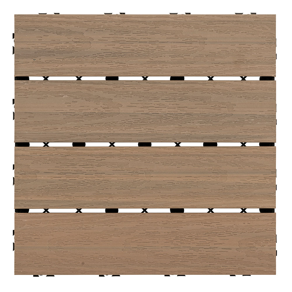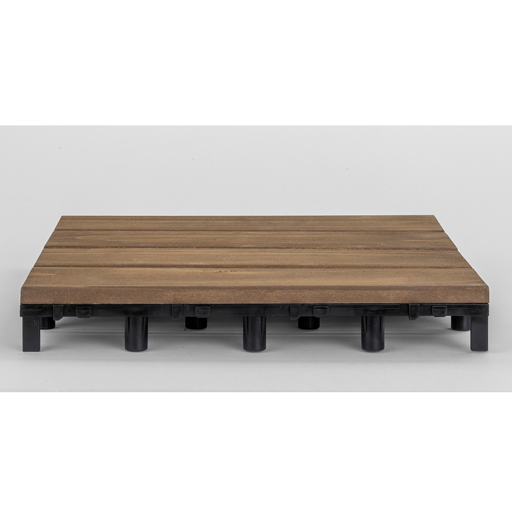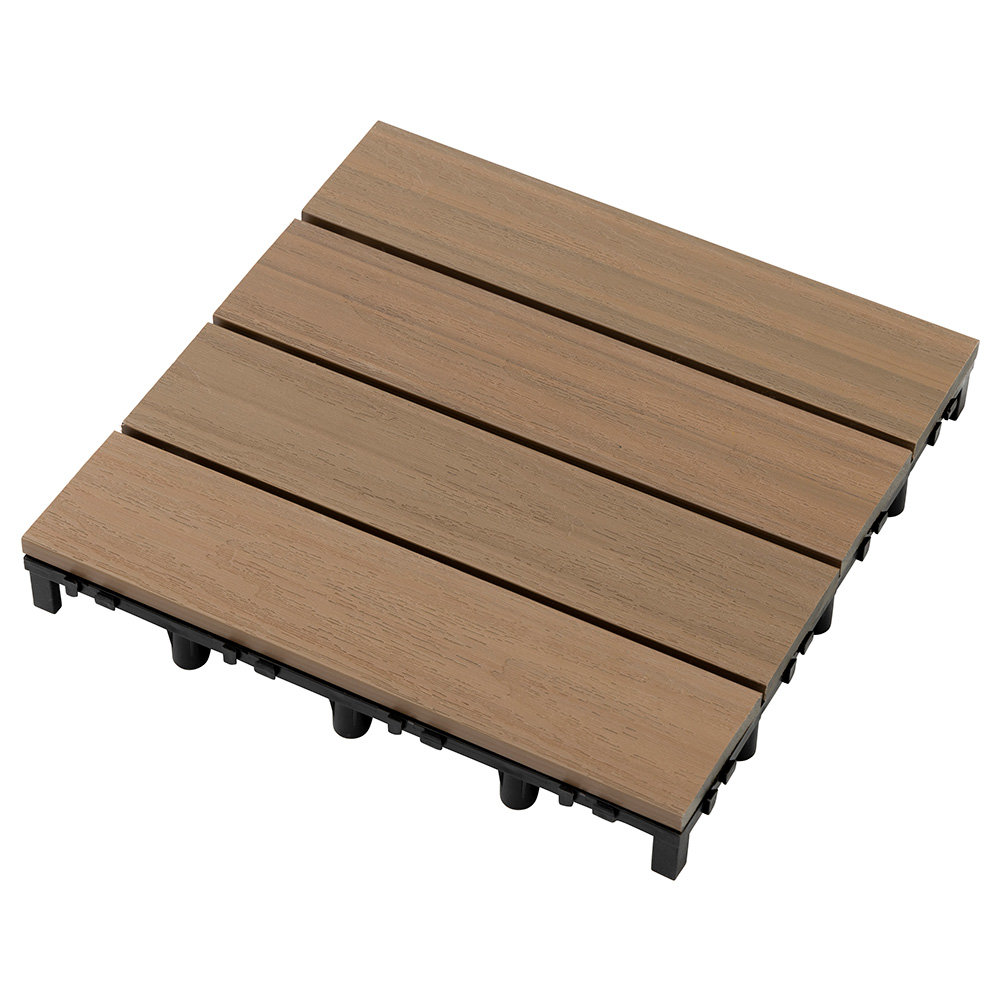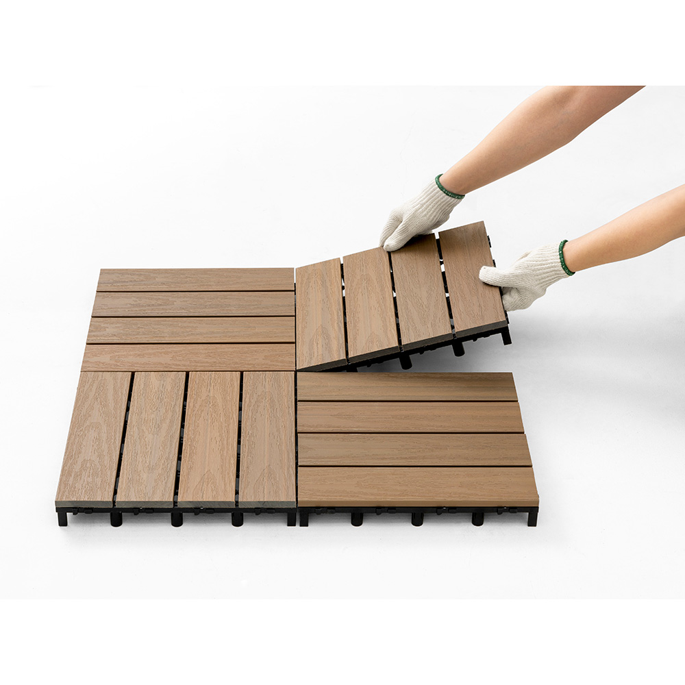 バルコニーの印象がアップする、お手入れ簡単なジョイント式人工木デッキの追加用18枚です。床下の高さが2.2cmあり、掃除もしやすく虫除け剤の設置も可能とメリットがたくさん!並べて敷き詰めるだけのジョイント式人工木デッキの追加セット。◆はめ込むだけで設置が簡単!床下の高さが2.2cmあるので、ゴミや枯れ葉がたまりにくく、排水性が抜群です。ホースを通して水掃除をしたり、害虫対策の忌避剤等を置けるスペースも確保できます。