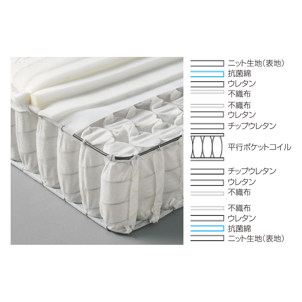 マットレス…表地=アクリル60%・ポリエステル40%、側生地=ポリエステル100%、中身=ポケットコイルスプリング