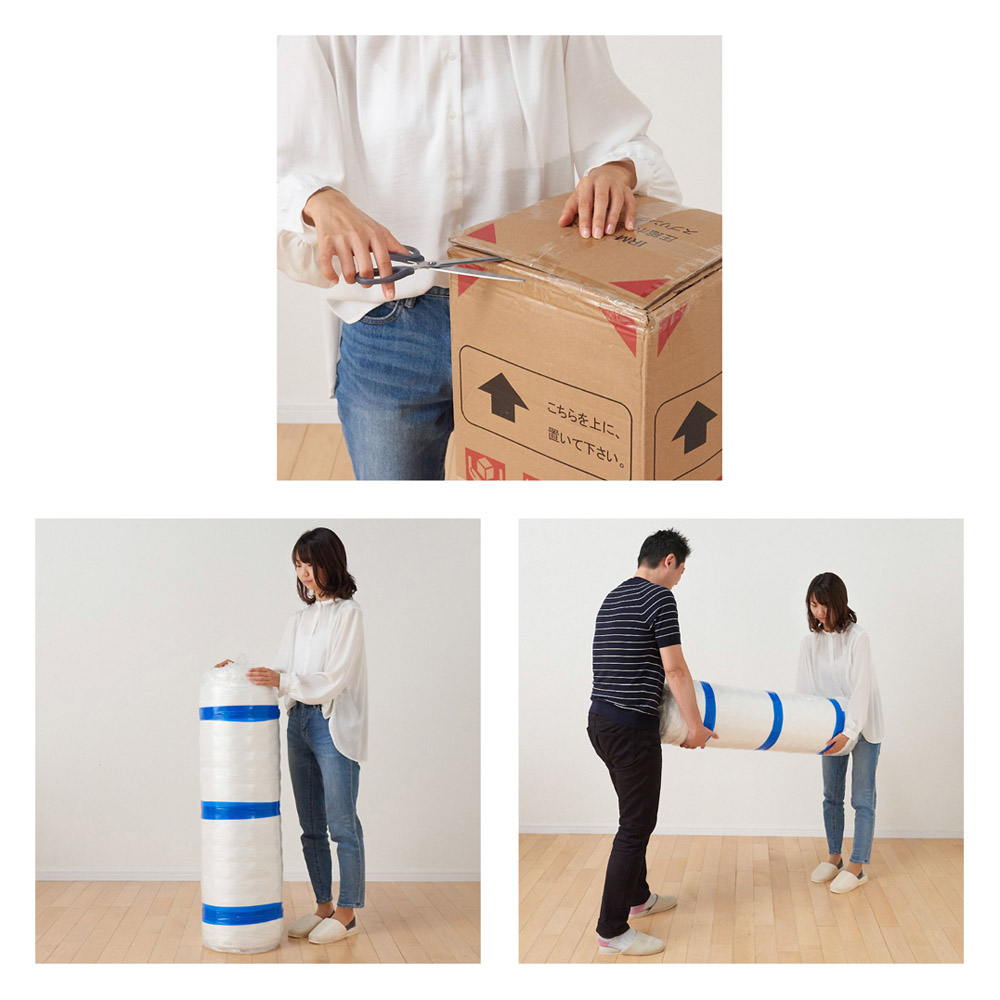 • ロール状の梱包を解けば、あっという間にマットレスが復元されます。(※マットレスはロール状態開封後は返品できません。)