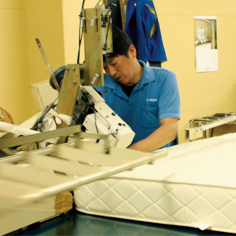 伸縮性の高いニット生地で包むことで、しっかりとしたポケットコイルの寝心地に適度な柔らかさを加えました。