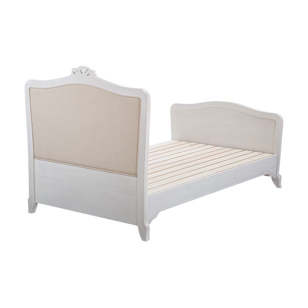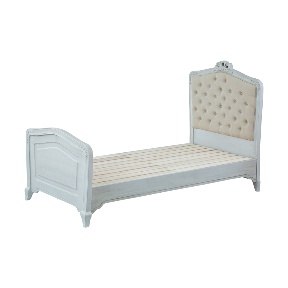 華やかなリボンモチーフのレリーフと、柔らかなファブリックの装飾で憧れのベッドルームを。毎日が愛おしくなる、大人のシャビーシック空間を叶えるクラシックデザインのベッドです。国産圧縮両面仕様ポケットコイルマットレス付き。寝心地はソフト・ミディアム・ハードから選べます。〜お気に入りのベッドルームで、私だけの贅沢時間を◆装飾とボタン留めがラグジュアリーなハイバックのヘッドボードがついています。◆読書やTV鑑賞の時間も、ゆったりと頭を預けて快適にお過ごしいただけます。◆優美なクラシックデザインで、お部屋のインテリアの主役に。◆お気に入りの家具で心がゆっくりと満たされていくような、夢見るベッドルームを叶えます。〜上品なグレイッシュカラー〜◆クラシカル×ホワイトは女性にとって心惹かれるインテリアのひとつ。◆「でも甘すぎるのはちょっと…」と思う大人の女性にこそおすすめなのがグレイッシュホワイトの家具です。◆落ち着きのあるグレーがかったホワイト色で、上品な美しさをたたえます。◆長年使いこまれたような味わいが出るよう、表情豊かなアンティーク加工に仕上げました。◆柔和さとクールさが絶妙に同居するカラーリングが、センスあふれるシャビーシックを約束します。〜密やかなレリーフ〜◆リボンモチーフは、職人の手で一つひとつ丁寧にかたどられています。◆ボリュームのある柔らかなリボンのモチーフで、品の良いかわいらしさを演出します。◆映画に出てくる海外インテリアのようなおしゃれなインテリア空間を、ご自宅でお楽しみください。◆アンティーククラシック風やナチュラルフレンチカントリー風のお部屋コーディネートにもおすすめです。★国産圧縮両面仕様ポケットコイルマットレス付き≪高密度にコイルを使った両面仕様の国産ポケットコイルマットレス≫厚み約23cmとボリュームのある仕上がりで、両面をひっくり返しながら長く使えるホテル品質のマットレスの心地よさを信頼の国産仕上げ。側面にメッシュ加工で通気性を高め、寝心地もソフト・ミディアム・ハードから選べます。また、袋詰めされた個々のポケットコイルが独立して動くため、身体のラインに沿ってしっかり点で支えます。選べる3つの寝心地●ソフト(柔らかめ)体のラインに合わせやすい寝心地です。お子様や女性や柔らかい寝心地がお好きな方におすすめです。●ミディアム=レギュラー(ふつう)心地よい硬さで体へのサポート力がある寝心地です。一番人気の定番のタイプです。●ハード(硬め)硬めのウレタンとハードコイルの組み合わせで全身をしっかりと支えます。体重の重たい方や、腰の沈み込みが気になる方、固めの寝心地がお好きな方におすすめです。〜商品担当者のコメント〜お洒落でクラシックなフォルムとポイント使いの優美なリボンモチーフで、憧れの空間が叶う大人の白家具シリーズです。グレー味のかかった落ち着いた白色なので、お部屋のインテリアになじみながら、上品に存在感を放ちます。自分へのご褒美やお部屋の模様替えにもオススメの心ときめくクラシック家具で、毎日の「自分時間」をより贅沢にお楽しみいただけたら幸いです。※手作業によるアンティーク風仕上げおよび天然素材の性質上、塗装の濃淡・かすれ等の風合いは1点ずつ異なります。商品全体、特に手彫り部分は職人の手作業で、部分的に長年使用したような汚れ、キズなどを再現しています。味わい深く趣のある風合いをお楽しみください。