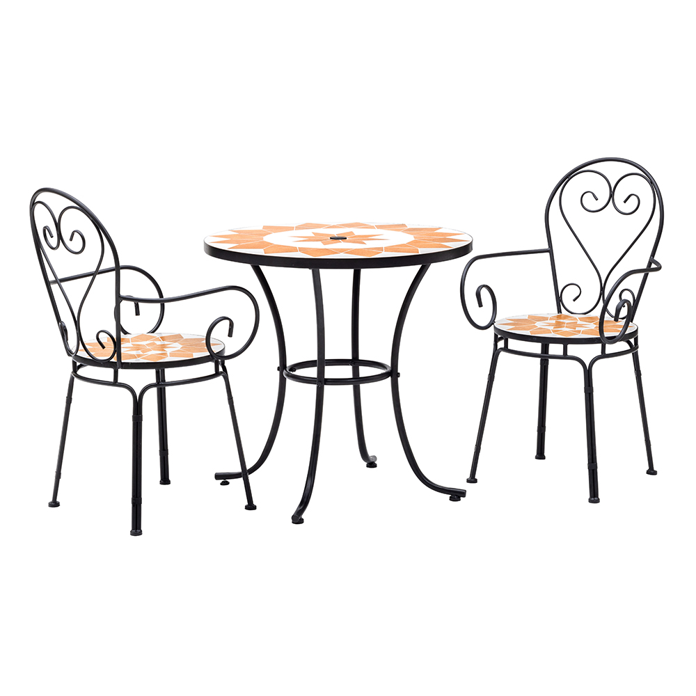 明るくおしゃれにガーデンを彩るオレンジ色が主役のモザイクファニチャー。