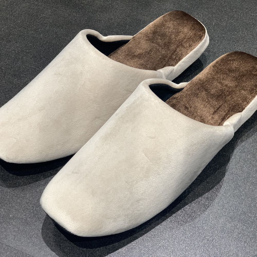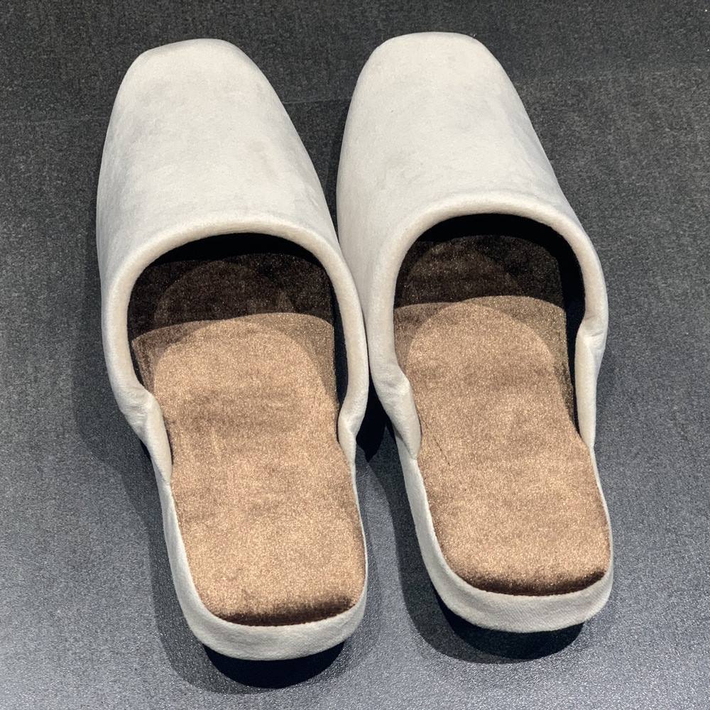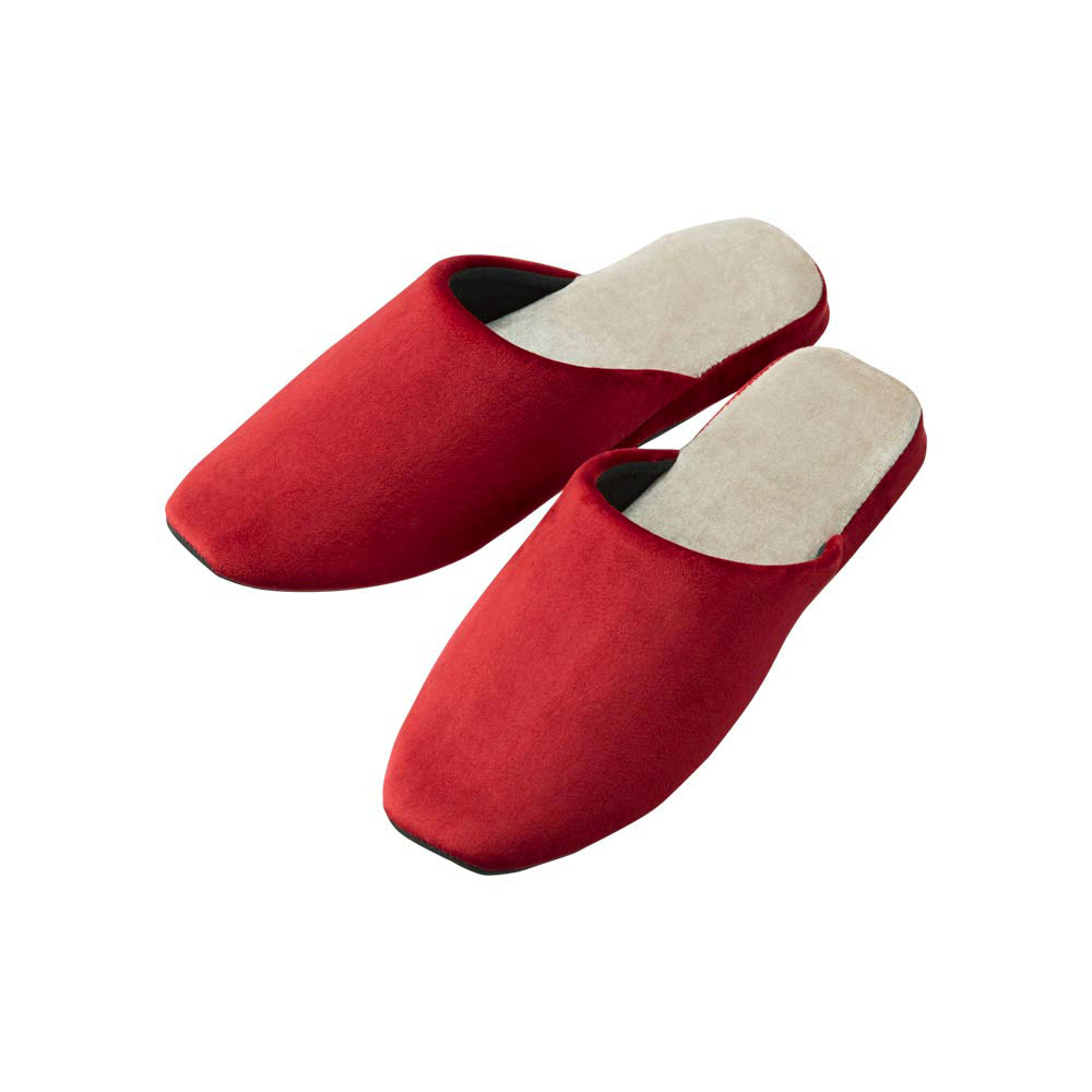 端正なスクエア型とスエード調素材の美しいデザインのスリッパ。色違いで並べてセンスある空間に。履き心地が柔らかく、ゲスト用にもおすすめです。スクエア状の上品なスエード調スムーススリッパ。長く履きやすいインソールを採用し、端正な見た目を叶えた、機能もデザインも兼ね備えたスリッパです。端正なスクエア型で並べておいても、履いている間も美しいデザインのスリッパ。こだわりのスエード調とモダンな色味が魅力です。色は【ルビーレッド】【グレー】【ソフトブラウン】【アイボリー】の4色から。肌当たりの良い中敷きと外側の甲部分がバイカラーで、玄関に並んでいる様子もおしゃれに。軽くて疲れにくい快適な履き心地が特徴です。■上品な形状で足にフィット履いた時の軽やかさ、フィット感を重視したソールを採用。長く履いても疲れにくく、リピーターの方も多いソールを採用しています。■長時間の使用も快適なインソール少し厚みがありながら品性・おしゃれさを保った快適なインソールを採用しています。メーカーとディノスバイヤーで何足も試用や試行錯誤をし、長く履きやすく端正な見た目のインソールに。脚が包まれるような心地よさです。■甲の裏はメッシュ素材で快適蒸れやすい甲の裏側にはメッシュ素材を使用しているため、快適に長時間使用いただけます。■パタパタ音を軽減する素材を底面に使用。自分のお気に入り用にも、ゲスト用にもおすすめです。■MとLの2サイズ展開、夫婦や家族でのご使用にも上品な色展開にサイズは2サイズ展開のため、合ったタイプを選んで履いていただけます。ご夫婦やご家族、来客向けに色違いを揃えていただくのもおすすめです。並べるとバイカラーの甲・インソールが素敵に。