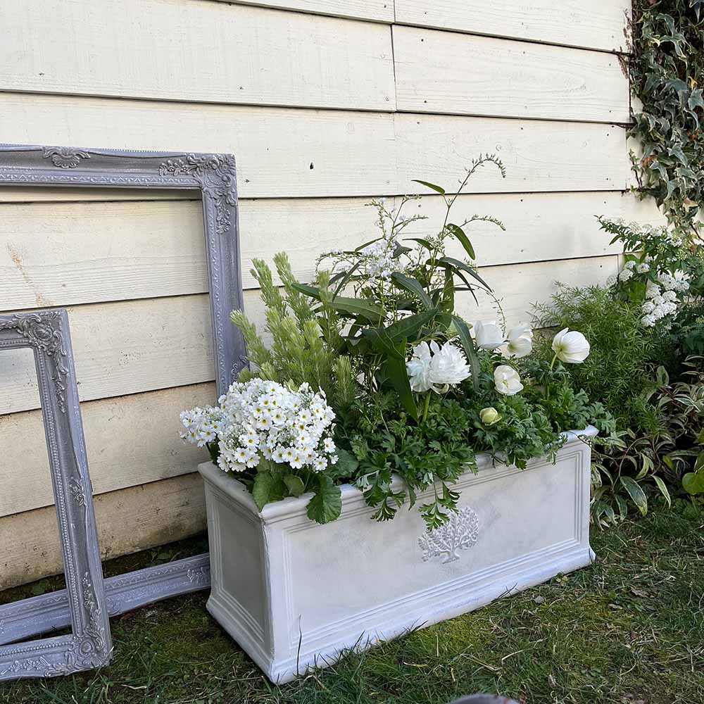 【2個組】花やグリーンが映えて置くだけで絵になるプランター。クラシックな雰囲気が植栽を引き立てます。◆シックな柄がおしゃれなスリムプランターは植栽を引き立ててくれるデザインです。◆ヨーロッパの庭園に置かれているようなエレガントなポットでアンティーク風ガーデンにお勧めです。◆ナチュラルガーデンにもフレンチガーデンにもマッチし、お花を入れても植物を入れても映えるデザイン。