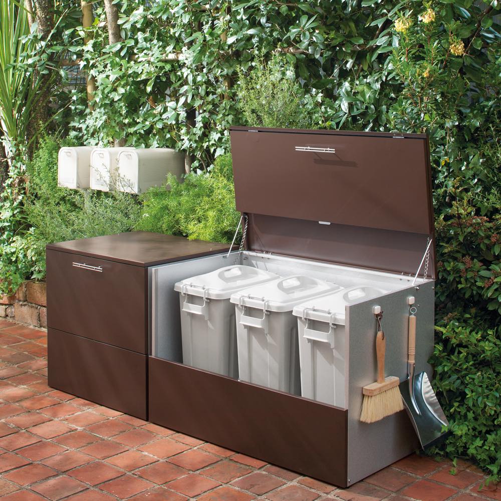 ガーデンやエントランスに違和感のない屋外用ストッカーで、ダスト待機の指定席を。