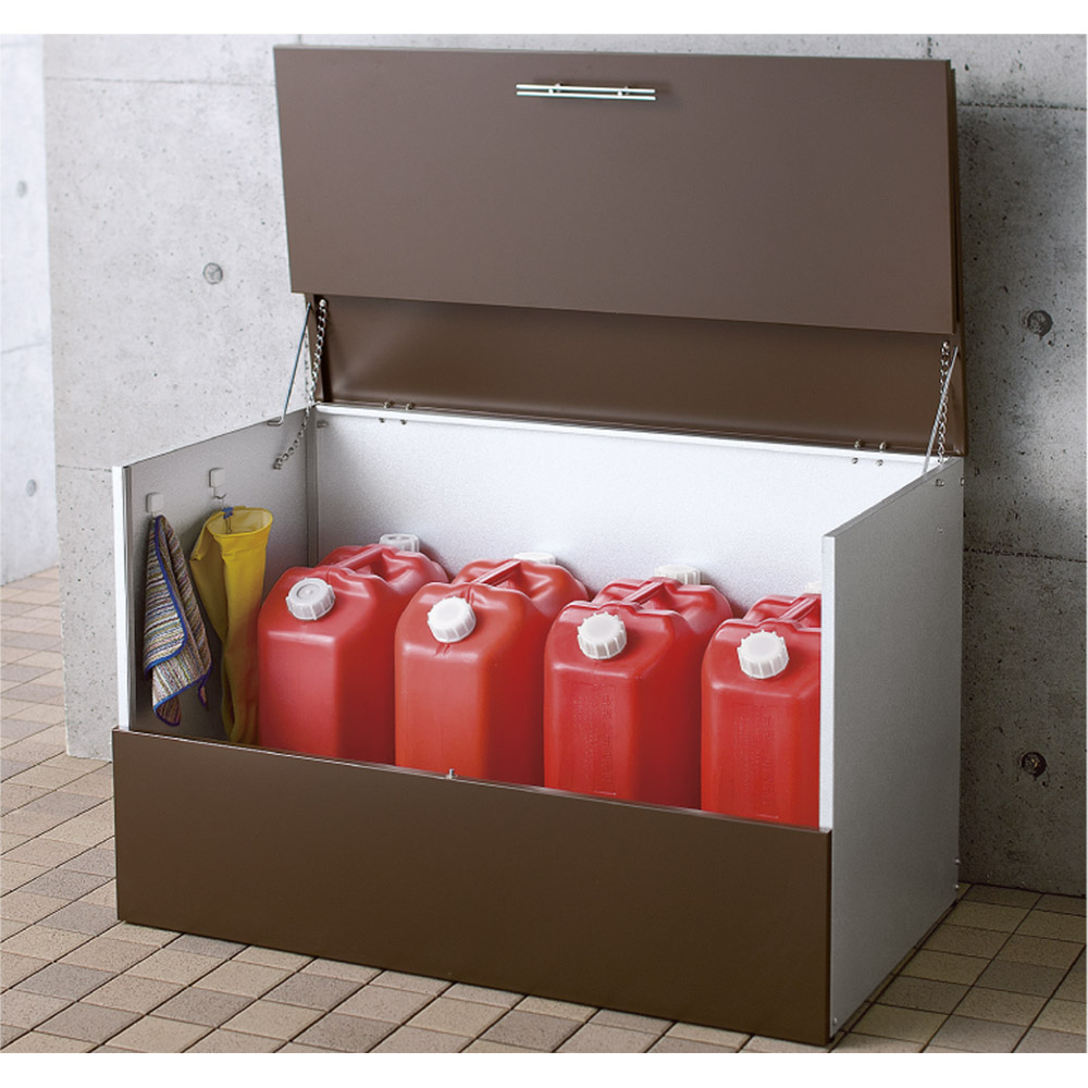 ポリタンクを4個収納可能。フタを閉めれば見た目がすっきりするので景観美を崩しません。 ※開閉部分仕様が異なります。