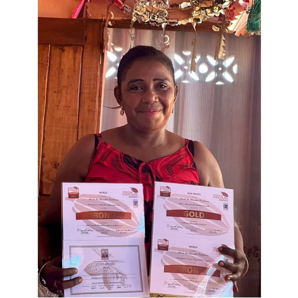 マダガスカルカカオへの思いがつまったチョコレートです(写真中央のピンクの箱が本商品です)