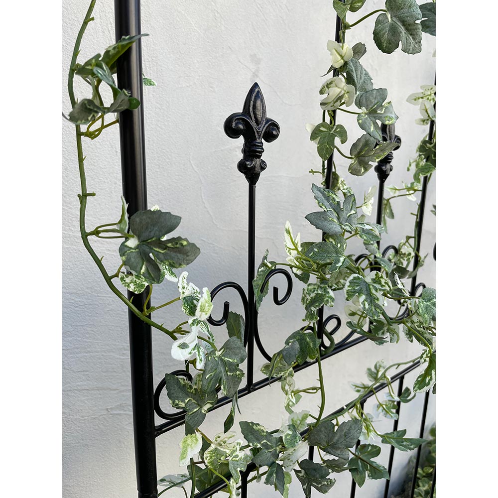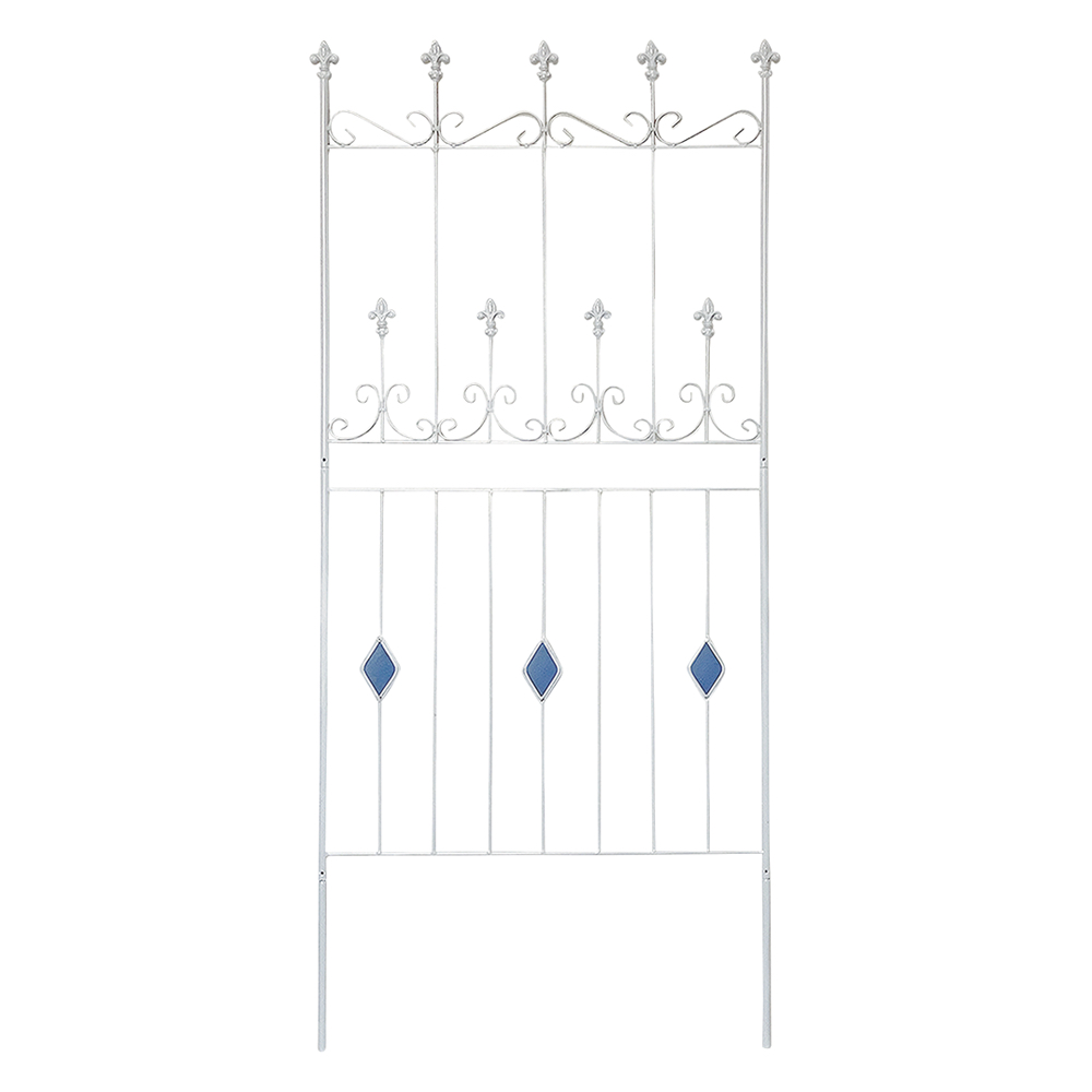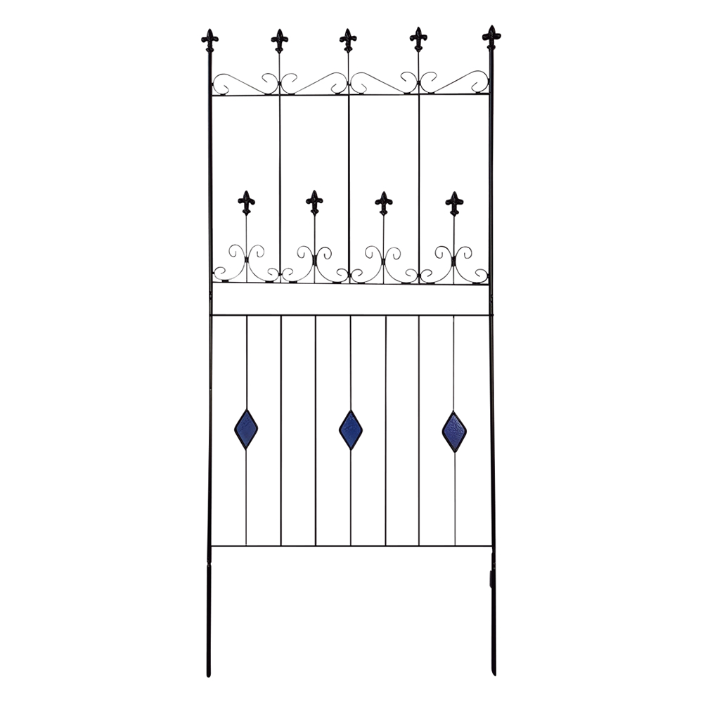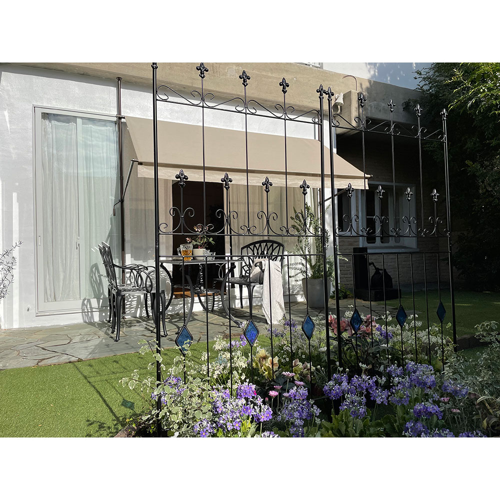 【影を楽しむガラスガーデン】アイアンフェンス×ステンドグラスの新しい組合せ。365日お花の無い季節でも楽しめるフェンス。※同色2枚組人気の【影を楽しむガラスガーデン】のシリーズ!〜365日お庭を楽しむ〜「植物の無い季節でも彩りを感じることが出来るお庭にしたい…!」そんな想いから、色のついたガラスで植栽の無い時期でもお庭に彩りをプラスするというアイデアを思いつきました。今までやったことのなかった線材のスチールにガラスを埋め込む…という技術。何度も何度も試作を重ね、遂に完成しました。ガーデン雑貨の中ではとても珍しい「スチール×ガラス」の組合せ。◆ガラスとアイアンの新しい組合せ・壁面や地面に映りこむステンドグラスの光を通した色影も美しく、お庭に降り注ぐ太陽の光加減によっての変化も楽しめます。・いつでもお庭に目をむけたくなるような自然を、影を、光を楽しんでいただける商品です。・どこで買ったの?と言われること間違いなし!・365日お庭の主役になるアイテム。お庭に置いて差し色としても。・植栽を誘引すると植栽の間からガラスがちらりと見えます。※ステンドグラスの特性上、中に細かい気泡が入っている場合がございます。