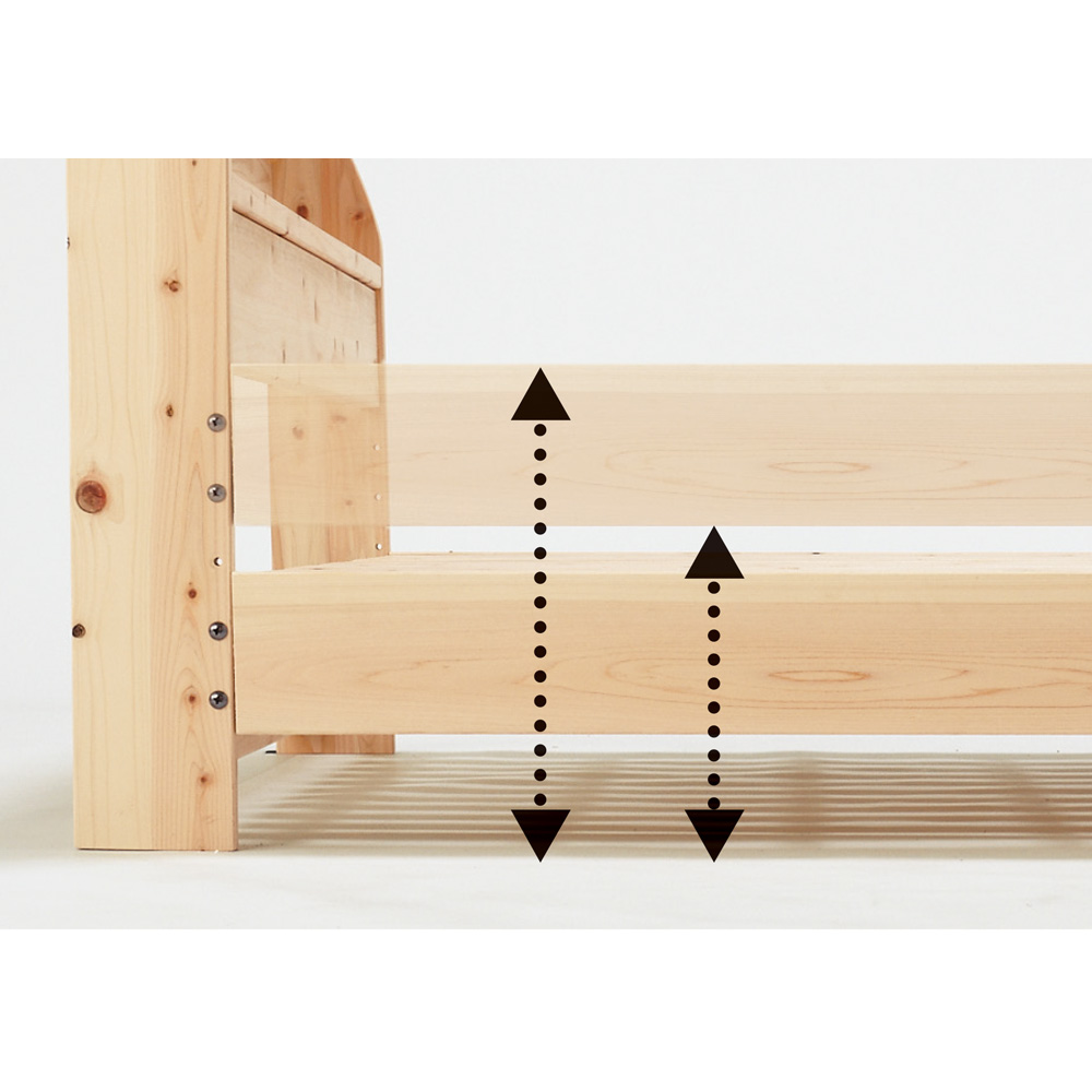 お好みで床面高さを4段階に調節可能。床面高さは21・26・31・36cmの4段階に調節可能。ご使用の寝具に合わせて選べます。