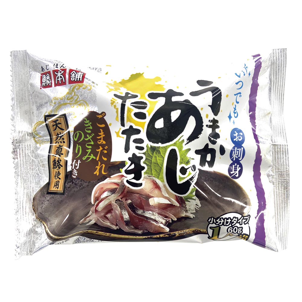 お客様から支持されたのはコレ!高評価グルメ!特殊な製法だから楽しめるプリプリ食感!甘めの醤油タレがポイントのアジのたたき。天然真鯵使用プリプリの食感が残ったカップ製法で作られています新鮮なあじを瞬間冷凍しました!冷凍したお刺身とは思えないほど、生のお刺身の食感です。秘訣は真空しないカップ製法!真空にしてしまうと身が潰れてしまい、せっかくの食感が損なわれてしまいます。そこで、カップに入れて凍結をかけることで、お刺身は本来の柔らかさを保ち、解凍した際にもプリプリな食感を残すことに成功しています。たれは九州で主流の、酒やみりんが入った甘めの醤油を使用。たれとごまをあじに混ぜ合わせ、最後にきざみのりをまぶしてお召し上がりください。【口コミ点数4.2※2】お客様の声※1・新鮮なお刺身が大好きで、ほぼ毎日欠かせません。買い物に行けない日には解凍時間も短く便利で、味も手のかかった品らしいので楽しんでおります。※ 1 「 お客様の声」は個人の感想です。※ 2 口コミ点数は、ディノスオンラインショップで2024年4月1日〜2025年12月31日の期間中に評価された点数の平均点です。