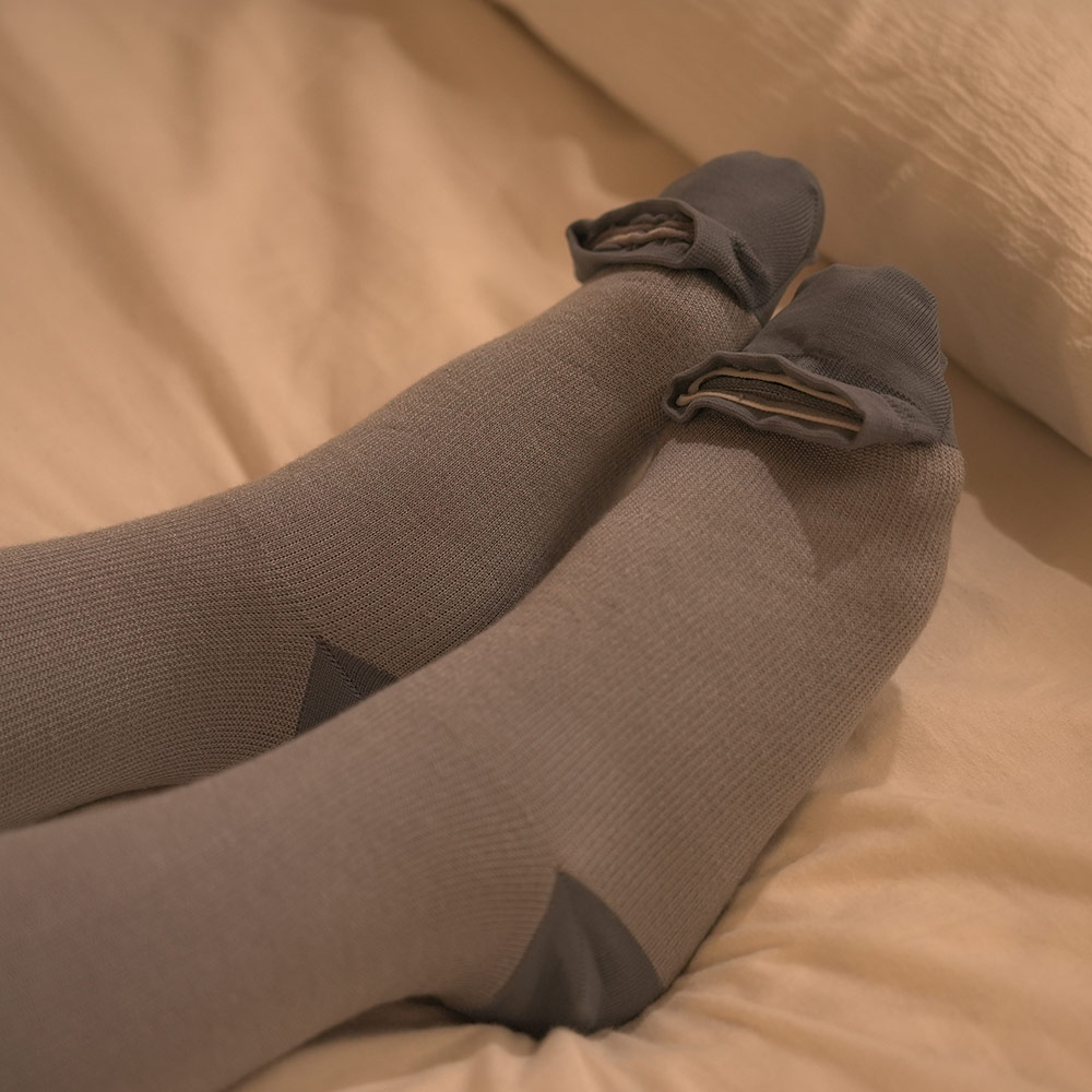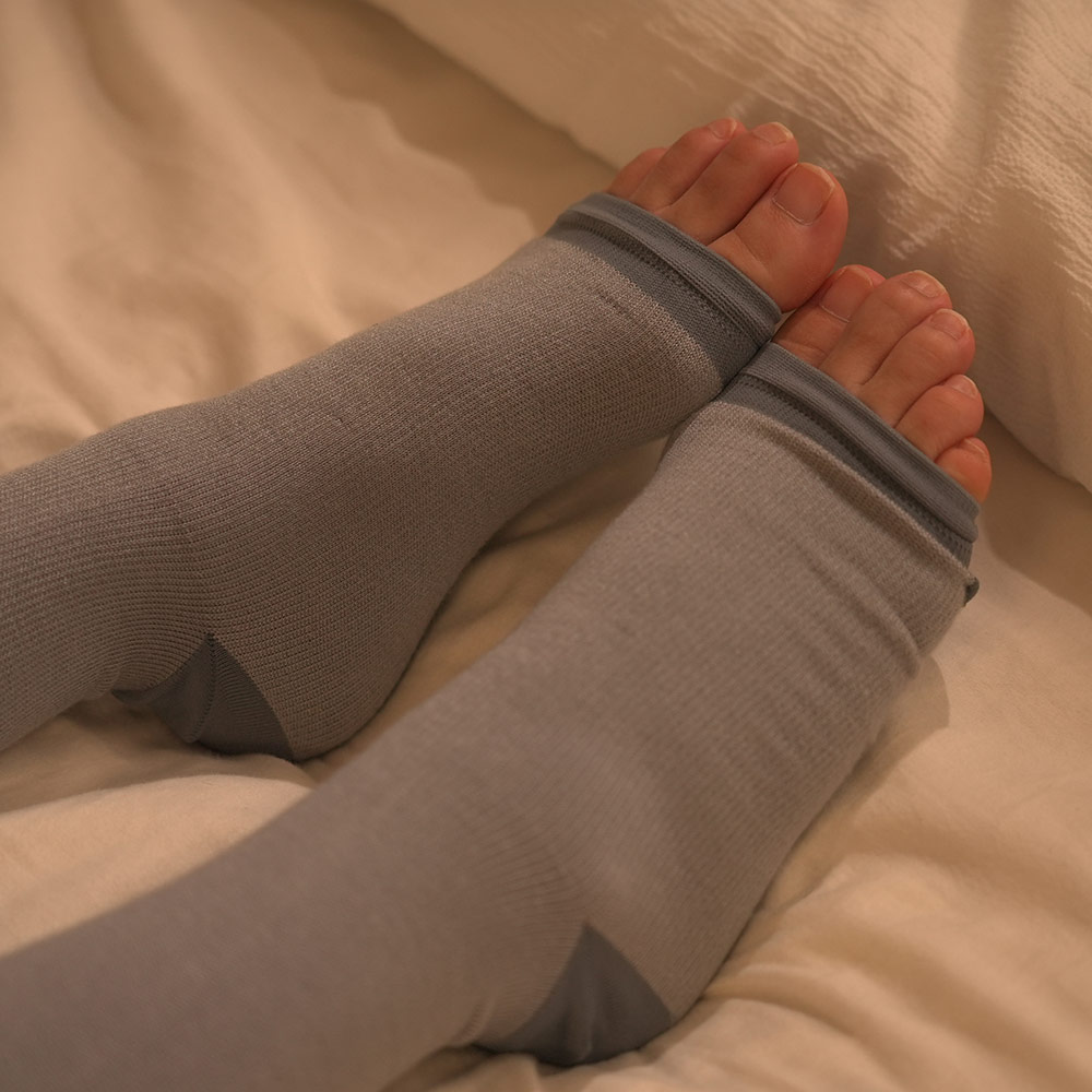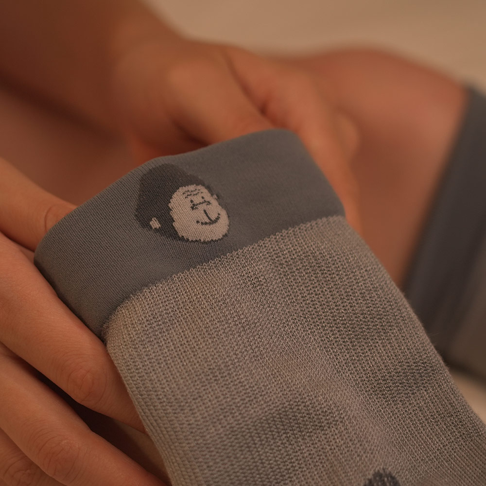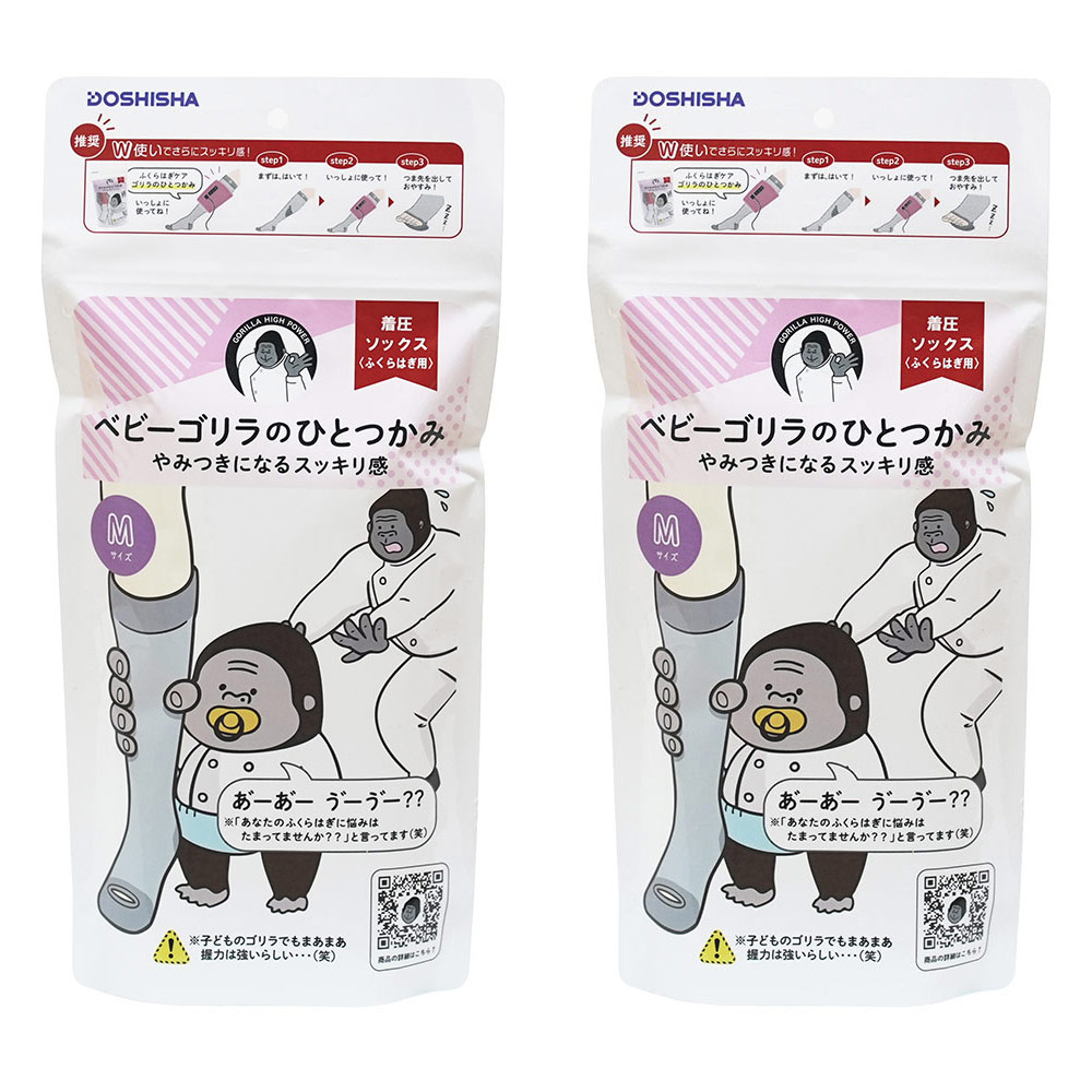 あの大人気ゴリラシリーズにベビーゴリラが登場!ベビーゴリラの程よい圧で足が快適に。あの大人気ゴリラのハイパワーシリーズにベビーゴリラが登場!時間帯に合わせた使用方法で、朝も昼も夜も、あなたの足に寄り添って快適で軽やかな毎日をサポートします。ベビーゴリラの程よい圧で感じる心地良さ!部位で編み方を変えており、ふくらはぎから足首にかけて部位によって圧が違う着圧設計のソックスです。最大21hPaなので無理なく、快適に履くことができます。左右独立設計のため、それぞれの足にしっかりフィットするのも嬉しいポイント。つま先部分がオープン可能な仕様なので、ムレにくく就寝時も快適です。いつでも使える3WAY仕様・【朝】ルームソックスとして・【昼】「ゴリラのひとつかみ」と組み合わせてさらに爽快感・【夜】つま先オープンでムレにくく、そのままおやすみソックスにこんな方におすすめ!・一日中同じ体制や立ち仕事など脚を酷使するお仕事をされている方・強い締め付け感が苦手で“やさしい圧”でケアしたい方