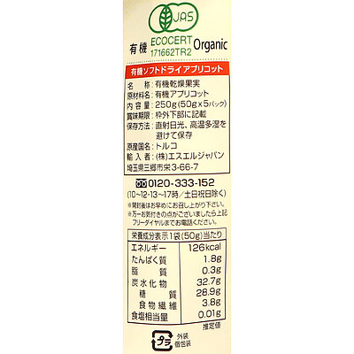 - > 休サニーフルーツトルコ産有機ドライフルーツアプリコ50g5p