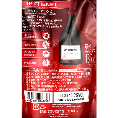 フランス ラングドッグ・ルーション J・P・シェネ イージーパック カベルネ・シラー 187ml×3パック