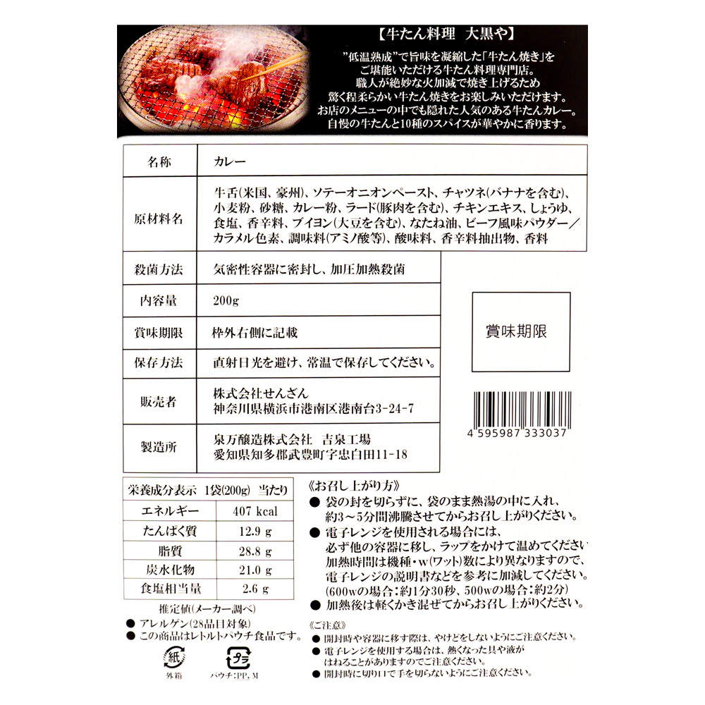 - > せんざん 牛たんカレー 200g×3個