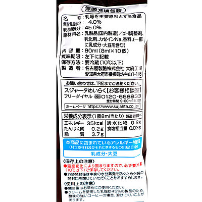 めいらく スジャータプレミアム 乳脂肪分45% (8ml×10)×6袋