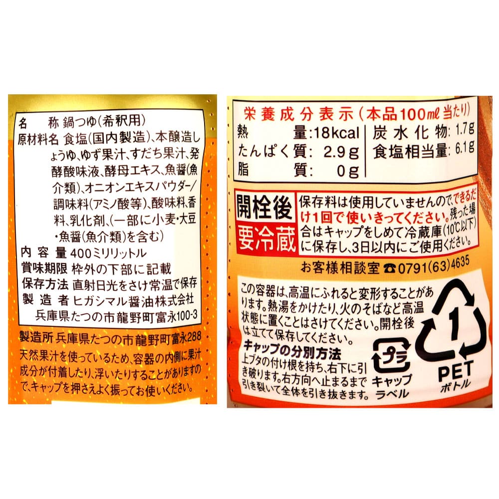 - > Sヒガシマル醤油 柚子しおちゃんこ鍋つゆ 400ml