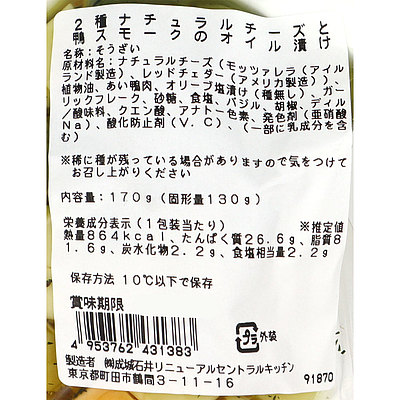 成城石井自家製 2種ナチュラルチーズと鴨スモークのオイル漬け 170g(個形量130g) | D+2