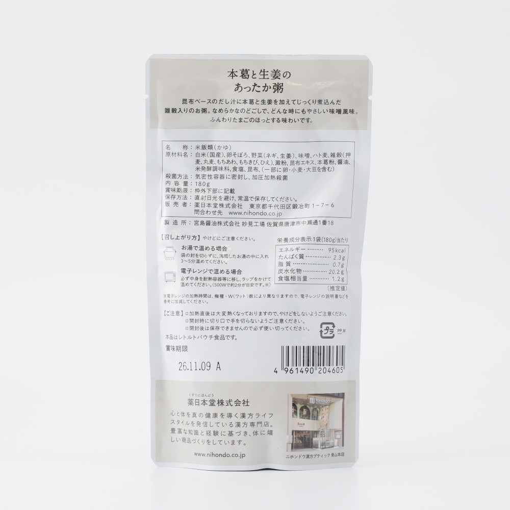 薬日本堂 本葛と生姜のあったか粥 180g