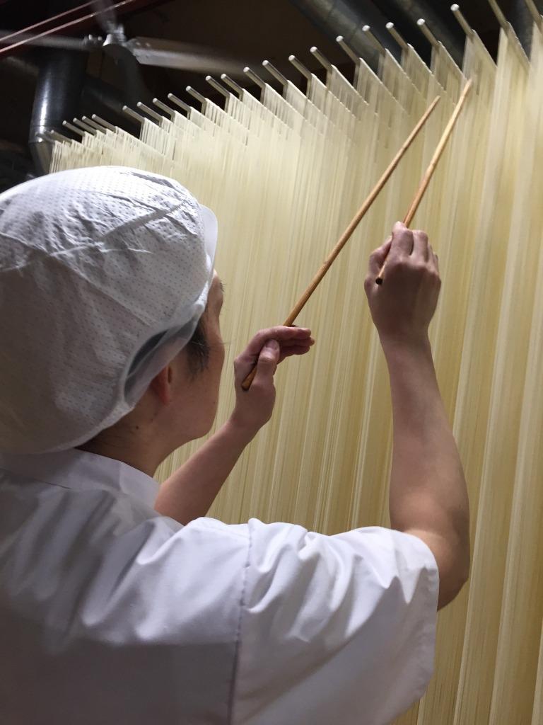 さらに、10月から3月の寒い時期に限定してつくる「寒づくり」のこの手延べ素麺は、甘味の強さが特長です。