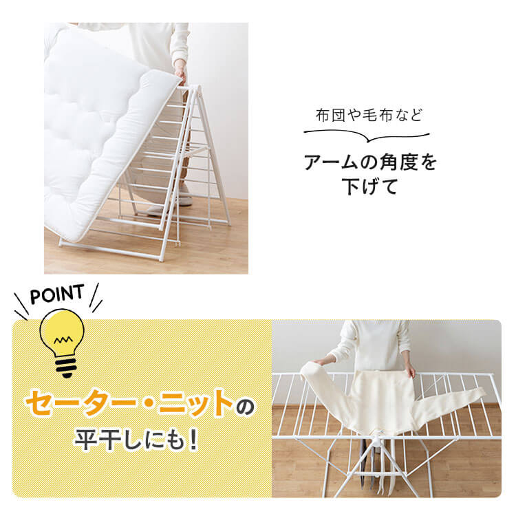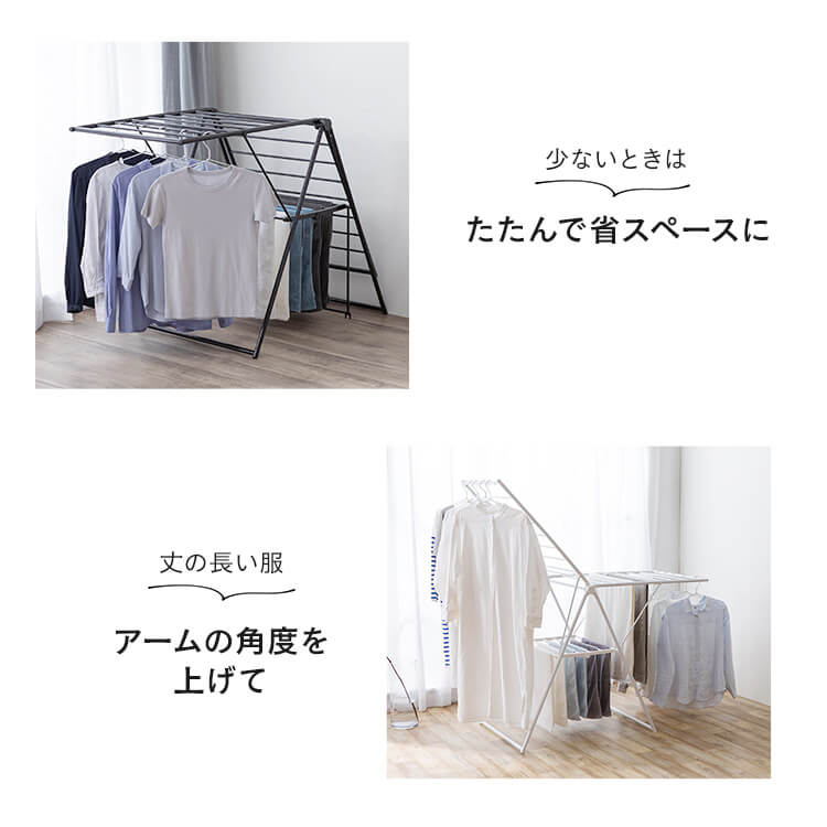 アームの高さを変えられるので、ワンピースや丈の長い衣類も干すことができます。