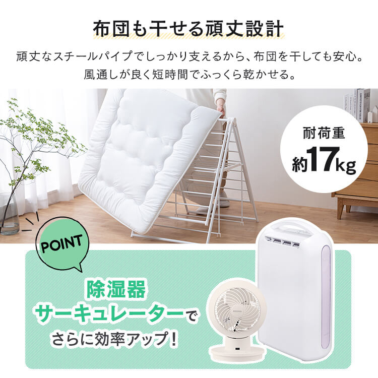 ※布団を干す場合は15kg(1枚)以下を目安にしてください。