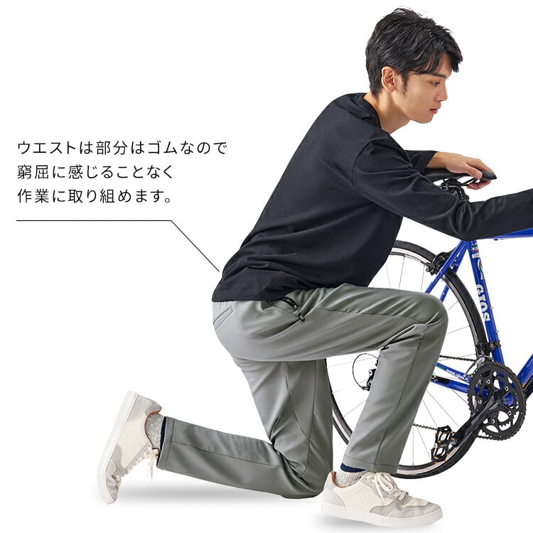 ウエスト部分はゴムなので窮屈に感じることなく作業に取り組めます。