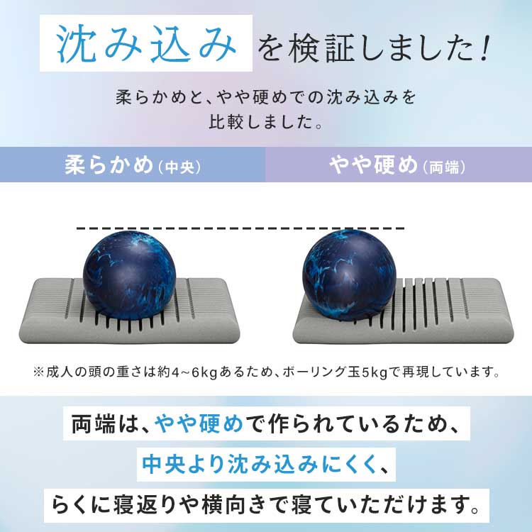 人体の約8%の重さを占める頭を、適度な反発力でしっかりと支えます。