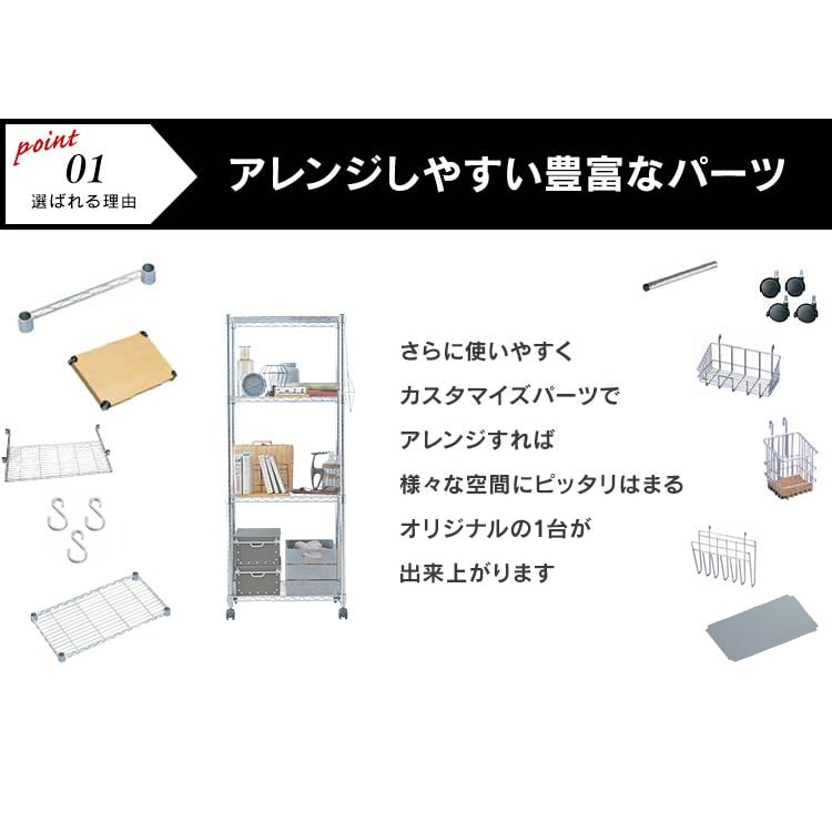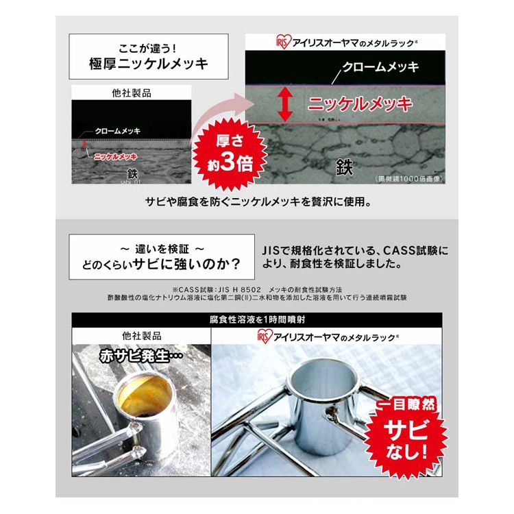 変形・変色などの劣化も少なく輝きが美しい高級品質のメタルラックです。