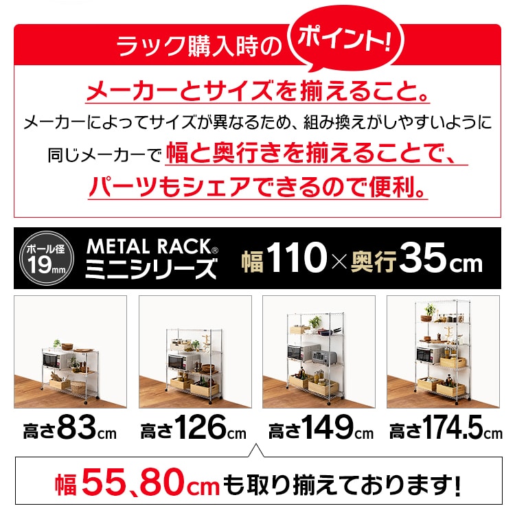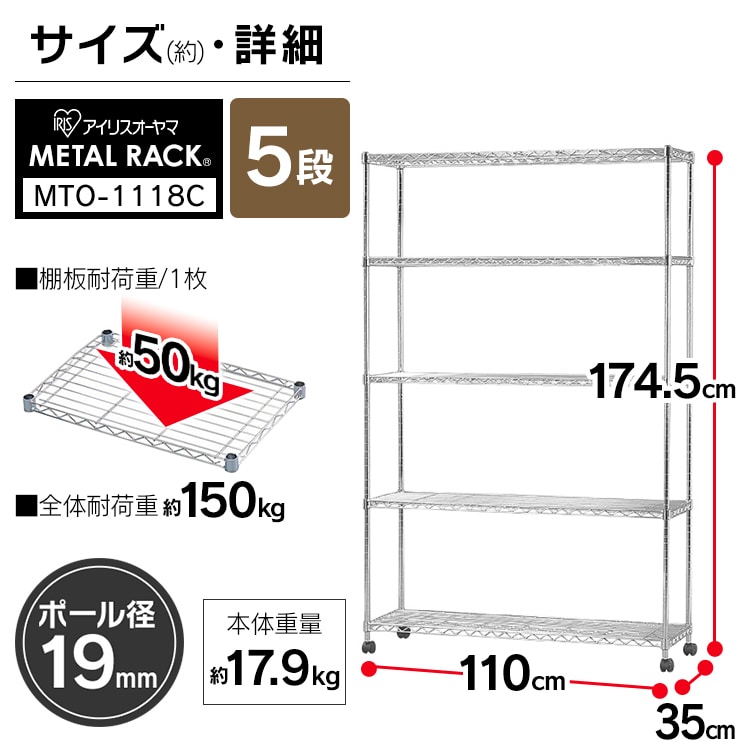 【幅110cm】メタルミニ(ポール直径19mm・棚板5枚) MTO-1118C