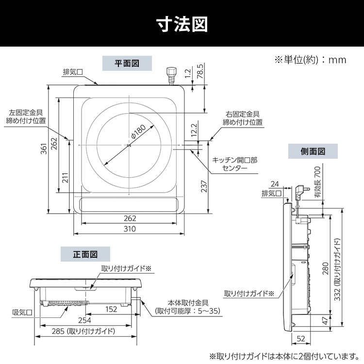 【商品説明】※この商品は適切な電気工事と設置が必要です※電気コンロからの置き換えに最適な1口ビルトインIHクッキングヒーターです。ご家庭のコンセントで使える電源200Vタイプです。(※取り付け工事は必要です。)高火力なので、ミニキッチンでも本格調理を楽しめます。加熱調理から揚げ物まで多用途に使え、煮込み料理に便利なタイマー機能付き(1分~9時間50分)です。火を使わないのでキッチンの温度が上がりにくく快適にお料理することが出来ます。【5つの安全機能】◆なべなし検知機能/小物検知機能使えないなべを置いて加熱をした場合、なべを載せないで加熱をした場合、スプーンなどなべ以外の小物を置いて加熱をした場合、エラーを表示して加熱を停止します。◆内部回路過熱防止機能内部の温度が上がるとランプが点滅して加熱を停止します。電源を切り、本体が冷えるのを待ってから使用してください。◆トッププレート過熱防止機能トッププレートの温度が上がると、エラーを表示して加熱を停止します。◆揚げ物鍋そり検知機能底のそりが大きいなべを使用して揚げ物調理をすると、エラーを表示して、加熱を停止します。◆切り忘れ防止機能調理を始めて約45分ボタン操作をしないと、「ピッ♪」の音の後加熱を停止し、その後電源が切れます。※本商品の設置には別途工事が必要です。【商品仕様】●電源単相200V(50/60Hz共用)●定格消費電力2000W●製品寸法(cm)幅約31.0×奥行約36.1×高さ約7.6(本体)●製品重量約3.0kg●電源コード長さ70cm、3芯キャプタタイヤケーブル●電源プラグ2極、接地極付き、250V、15A●火力調節加熱調理:6段階(火力) 300W相当~2000W揚げ物調理:6段階(油温) 約150~200℃●タイマー1分~9時間50分●加熱調理モード6段階(約2000W、約1500W、約1000W、約750W、約500W相当、約300W相当)●揚げ物調理モード6段階(約200、約190℃、約180℃、約170℃、約160℃、約150℃)●使用可能な鍋の材質・鉄、鉄鋳物・鉄ほうろう ※ほうろうなべは、空だきしたりこげつかせないようにする。底面のほうろうが溶けて焼き付き、トッププレートを損傷することがあります。・ステンレス18-0(SUS430)など ※種類によっては火力が弱くなったり、使えないなべもあります。・多層鋼なべ ※種類によっては発熱しないものがあります。●使用可能な鍋の形状底が平らで反りが3mm以下のなべ(揚げ物調理のときは、反りが0.5mm以下のなべ使用)●使用可能な鍋の大きさ加熱調理:直径12~26cmのもの揚げ物調理:直径18~26cmのもの