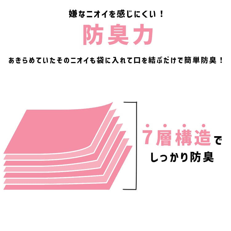 7層構造でニオイを閉じ込め、しっかり防臭するおむつ用防臭袋。