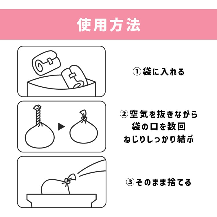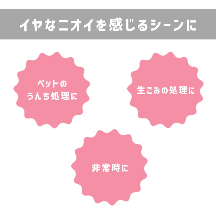お家の中やお出かけ中のあきらめていたそのニオイも、袋に入れて結ぶだけで簡単防臭!