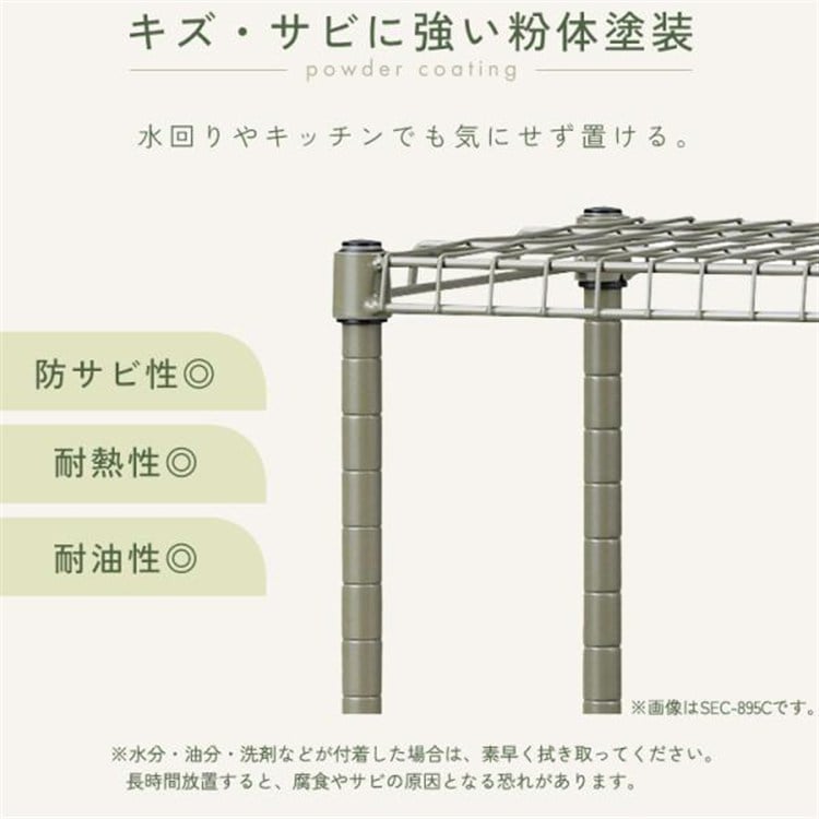 【商品説明】奥行スリムで使いやすい。お部屋に馴染むナチュラルデザインのカラースチールシェルフ。[4段キャスタータイプ/W61.5×D40×H90.3cm(キャスター取付時)]。【キャスター付き】キャスター付きだから移動や掃除がラクラク。デスク下の収納やクローゼット下の収納にも!【棚板の高さは調節可能】ポールに入った2.5cm間隔の溝で棚板の高さを調節可能。収納するものに合わせてムダなく最適なスペースを作れる。【豊富なシリーズ】カラースチールシェルフシリーズで揃えれば、お部屋に統一感も出しやすい。組み合わせてより使いやすく、自分に合うインテリアに。【キズ・サビに強い粉体塗装】防サビ性◎/耐熱性◎/耐油性◎!水回りやキッチンにも置ける。(※水分・油分・洗剤などが付着した場合は、素早く拭き取ってください。長時間放置すると、腐食やサビの原因となる恐れがあります。)【カンタン組み立て】1.ポールに棚板固定部品を取り付ける。2.ポールに棚板を差し込む。3.1番下の棚板をはめたらラックを立て、好みの位置に調節。4.全体が組みあがったら、軽く叩いて棚板を固定する。(※ゴムハンマーを使うことをおすすめします。)★お客様組立★【商品仕様】●製品寸法(cm)外寸:幅約61.5×奥行約40×高さ約90.3(キャスター取付時)棚板:幅約51.5×奥行約30●製品質量約5.3kg●棚板枚数4枚●耐荷重全体:約60kg棚板(1枚あたり):約15kg※耐荷重は測定値であり、保証値ではありません。●主要材質ポール、棚板:金属(鋼/エポキシ粉体塗装)棚板固定部品:ABS樹脂キャスター:ナイロン樹脂●必要工具ソフトハンマー(プラスチック、木、ゴム製など)、ゴム手袋※2人以上での組み立てをおすすめします。