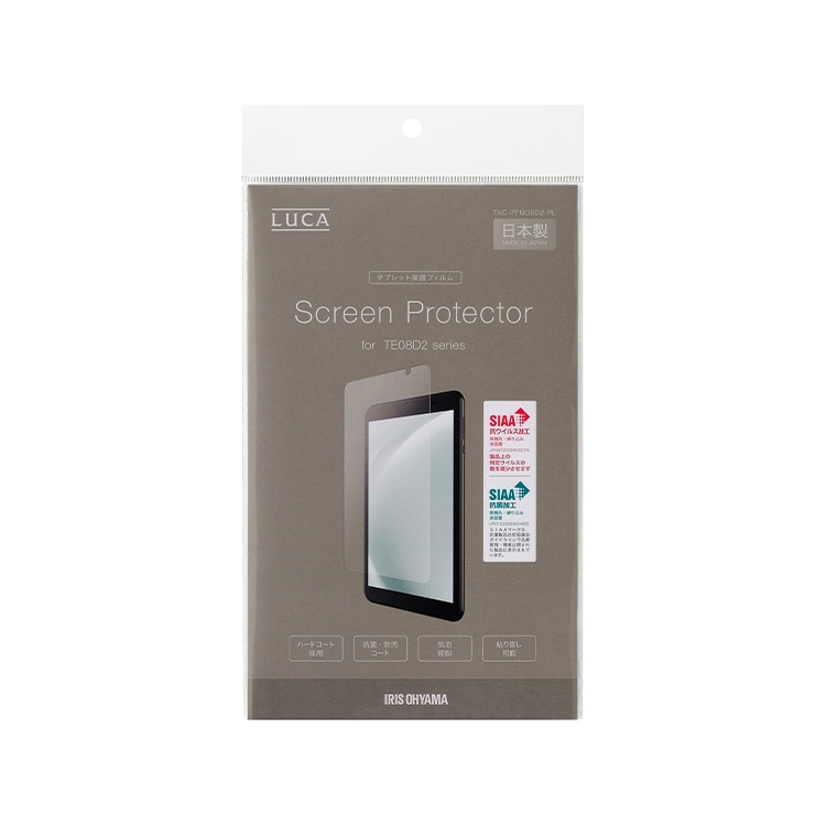 【商品説明】アイリスオーヤマ製タブレット専用保護フィルムです。キズやホコリから液晶画面をしっかり保護します。◆対応機種:TE08D2シリーズ◆ハードコート採用:傷が付きにくく、液晶を保護◆抗菌・防汚コート:汚れ強い、抗菌・防汚コートを採用◆気泡抑制:特殊シリコーン膜により、気泡が抜けやすく残りにくい◆貼り直し可能:再剥離性に優れ、水洗いすることで貼り直しも可能【商品仕様】●商品サイズ(cm)本体:幅約11.7×奥行約20.1×厚み約0.1パッケージ:幅約14.1×奥行約0.1×高さ約25.4●商品重量本体:約8gパッケージ:約33g●付属品フィルム貼付用ヘラ、クリーニングクロス●材質(液晶保護フィルム)PET(貼り付け面:シリコーン)●対応機種アイリスオーヤマ製タブレットTE08D2シリーズ※タブレット本体は別売りです。