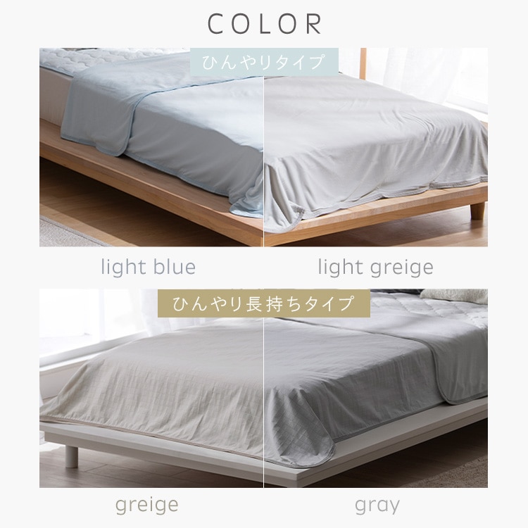 【商品説明】触れるたびにひんやり気持ちいい、冷感ケットです。【暑い夏に触れたくなる強冷感“Q-MAX接触冷感値:0.551w/cm2”】ナイロンよりも熱伝導性の高いポリエチレンを使用した「接触冷感」生地を採用しました。身体が触れていない部分は温度が下がるため、心地よいひんやり感が持続します。【電気代の節約にも】冷感寝具を使用することで、エアコンの温度設定を下げ過ぎず快適な温度で過ごせます。【抗菌防臭機能】抗菌防臭加工を施し、ニオイの原因となる細菌の繁殖を抑えます。【丸洗いOK】洗濯機での丸洗いが可能なので、定期的なお手入れで清潔に保てます。【肌触り選べるリバーシブル生地】生地は接触冷感とタオル地のリバーシブル仕様です。・ひんやり!接触冷感:夏におすすめ。・さらふわ!タオル生地:春、秋におすすめ。気温や季節に合わせて楽しんでいただけます。【商品仕様】●商品サイズ(cm)シングル:幅約140×奥行約190セミダブル:幅約160×奥行約190ダブル:幅約180×奥行約190●質量シングル:約880gセミダブル:約1kgダブル:約1.1kg●材質表面:ナイロン50%、ポリエチレン50%裏面:[パイル部分]綿100%[グランド部分]ポリエステル100%●洗濯表示・液温は40℃を限度とし、洗濯機で弱い洗濯処理ができる・塩素系及び酸素系漂白剤の使用禁止・タンブル乾燥禁止・日陰のつり干しがよい・アイロン仕上げ禁止・ドライクリーニング禁止・弱い操作によるウェットクリーニングができる※本来の用途以外に使用しないでください。※素材の特性上、毛羽落ちや毛玉が発生することがあります。※強い摩擦や湿気により、色落ち、色移りが発生する場合がありますので、ご注意ください。※長時間壁に直接接触する状態で使用しないでください。壁紙の種類によっては化学反応を起こし、色落ち、色移りが発生する場合があります。※他の製品と一緒に洗わず、単独で洗ってください。※蛍光増白剤配合洗剤は使用しないでください。※洗濯後は直ちに脱水し形を整えて干してください。