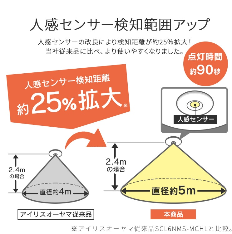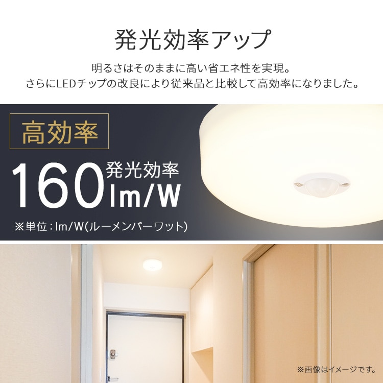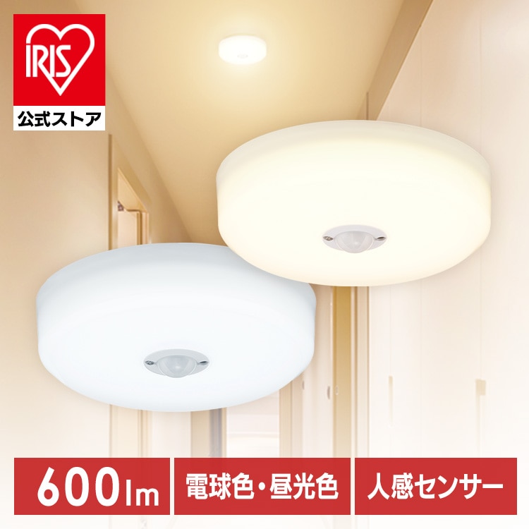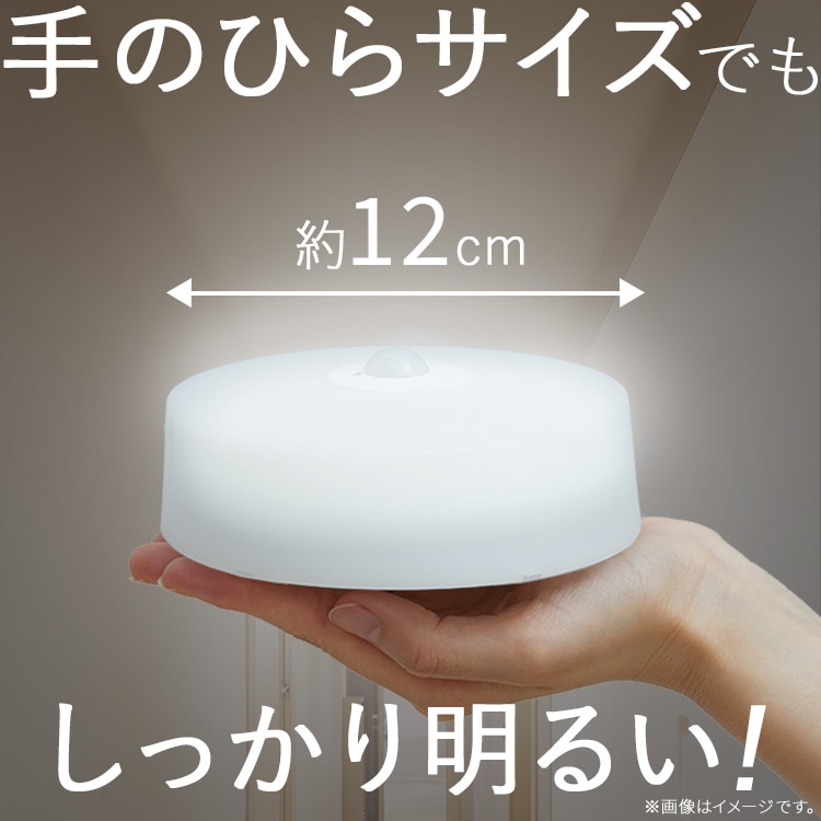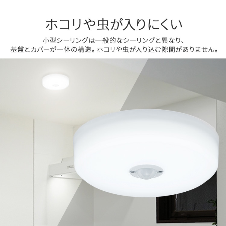 【商品説明】コンパクトでもしっかり明るいLED小型シーリングライトです。小型で場所を取らないので、トイレや洗面所、廊下やクローゼットなどの照明におすすめです。人を感知して自動でON/OFFになる人感センサー付きです。色がより自然に見える「演色性:Ra80以上」です。同じ明るさの白熱灯と比べて消費電力が小さく、電気代を節約できます。基盤とカバーが一体となる構造のため、ホコリや虫が入りにくいです。電気工事・工具不要で取り付けが簡単です。【商品仕様】●商品サイズ(cm)直径約12×高さ約4.7(端子除く)●質量約120g●器具光束600lm●色温度電球色:3000K昼光色:6500K●定格電圧、周波数AC100V、50/60Hz●定格消費電力3.7W●定格入力電流0.07A●待機消費電力0.1W●演色性Ra85●点灯照度100lx以下●検知範囲2.4mの天井に取り付けた際に半径約2.4m●設計寿命40000時間※LEDモジュールの設計寿命は、LEDが点灯しなくなるか初期光束の70%に低下するまでの総点灯時間のいずれか短い時間を推定したものです。製品の寿命を保証するものではありません。
