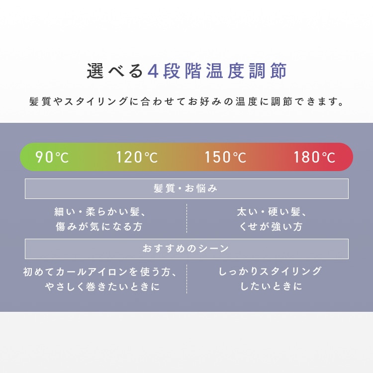 髪質やスタイリングに合わせてお好みの温度に調節できます。