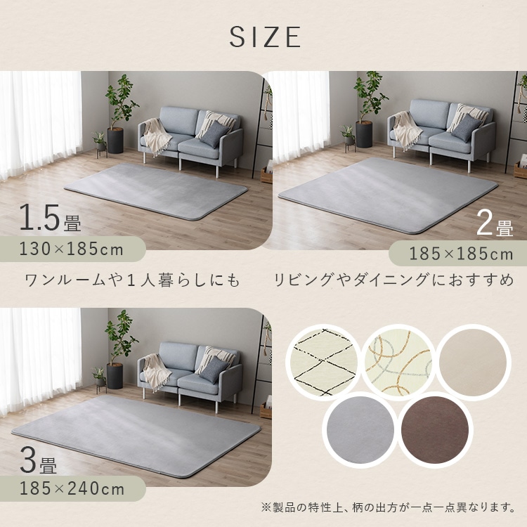 1.5畳(130×185cm)/2畳(185×185cm)/3畳(185×240cm)