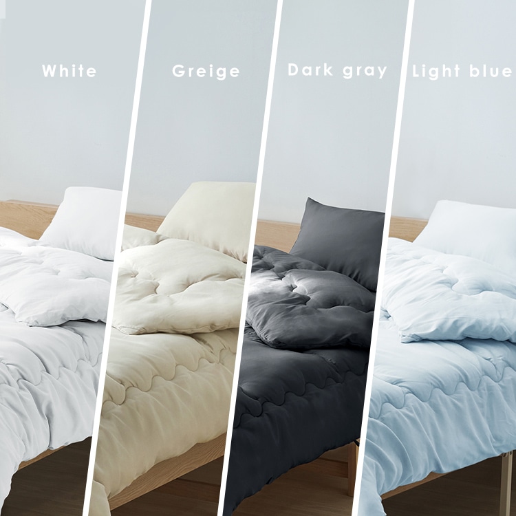 【商品説明】ベッド派におすすめ!最低限のアイテムが揃う3点セット!ピーチスキン加工でなめらかな肌触り。◆POINT.1 お使いのベッド+マットレスに合わせてすぐ使える![掛け布団]寝返りが打ちやすい程よい軽さ!だけど安心の中綿量で包まれるような快適なふんわり感。キルティング加工。中綿の偏りを防いで暖かさや形状を保つ!洗濯も安心![枕]寝ている間に頭にかかる負担は体重の10%程!サポート力が大事!首まで優しく包み込むふんわり感。サポート感も◎。横向き寝でも圧迫感を感じにくい![ボックスシーツ]30cmのマットレスまで対応したマチ幅。全周ゴムで簡単装着可能!【ここが便利】 速乾性に優れ、しわになりにくいポリエステルを100%使用!お手入れ簡単で清潔を保つ!◆POINT.2 圧縮梱包不織布バッグ付き!収納袋としても活用できる!◆POINT.3 低ホルムアルデヒドお子様でも安心の品質。年代問わず使いやすい。【商品仕様】●セット内容掛け布団、ボックスシーツ、枕●商品サイズ(cm)掛け布団:幅約150×奥行約210ボックスシーツ:幅約100×奥行約200×マチ幅約35枕:幅約50×奥行約35●商品重量掛け布団:約1.56kgボックスシーツ:約0.38kg枕:約0.38kg●材質掛け布団:側生地/ポリエステル100%、詰め物/ポリエステル100%ボックスシーツ:ポリエステル100%枕:側生地/ポリエステル100%、詰め物/ポリエステル100%●お手入れ方法洗濯可(洗濯ネット使用)