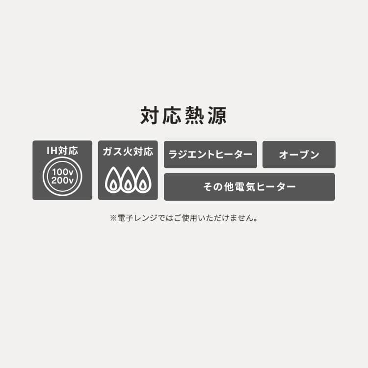 【商品説明】ガスコンロで使用の際、火が底面よりもはみ出した状態で使用を続けると、ハンドルの樹脂が焼損し異臭や変形などにより正常に使用できなくなる恐れがありますので、火の加減には十分にご注意ください。取手が取り外せる着脱式のフライパンです。重ねて収納できます。人工ダイヤモンドを細かい粒子状にして、ふっ素樹脂コーティングに配合した「ダイヤモンドコーティング」仕様。こびりつきを防ぎつつコーティングも長持ちします。※ハンドルは着脱式です。※IH、ガス火両対応です。※電子レンジには使用できません。【商品仕様】【フライパン】●商品サイズ(cm)20cm:直径約21.8×高さ約4.526cm:直径約28.1×高さ約628cm:直径約30.1×高さ約6●商品質量20cm:約300g26cm:約600g28cm:約700g●満水容量20cm:1.1L26cm:2.7L28cm:3.4L●表面加工(内側/外側)ふっ素樹脂塗膜加工/(底面を除く)焼付け塗装●材料の種類本体:アルミニウム合金はり底:ステンレス鋼(クロム16%)底の厚さ:2.6mm(はり底含む)●対応熱源IH対応(IH200V、IH100V)、ガス火、ラジエントヒーター、オーブン、その他の電気ヒーター【炒め鍋】●商品サイズ(cm)直径約28.1×高さ約8(寸法:26cm)●商品質量約600g●満水容量3.5L●表面加工(内側/外側)ふっ素樹脂塗膜加工/(底面を除く)焼付け塗装●材料の種類本体:アルミニウム合金はり底:ステンレス鋼(クロム16%)底の厚さ:2.6mm(はり底含む)●対応熱源IH対応(IH200V、IH100V)、ガス火、ラジエントヒーター、オーブン、その他の電気ヒーター※ハンドルは別売りです。※必ず中火以下で、調理面には油をひいてご使用ください。※調理後の急激な冷却は避けてください。※金属製の調理器具のため電子レンジではご使用いただけません。