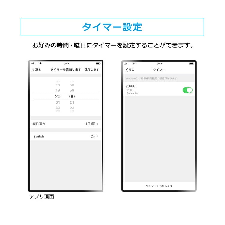 専用アプリでは、外出先から基本操作やタイマー設定ができ