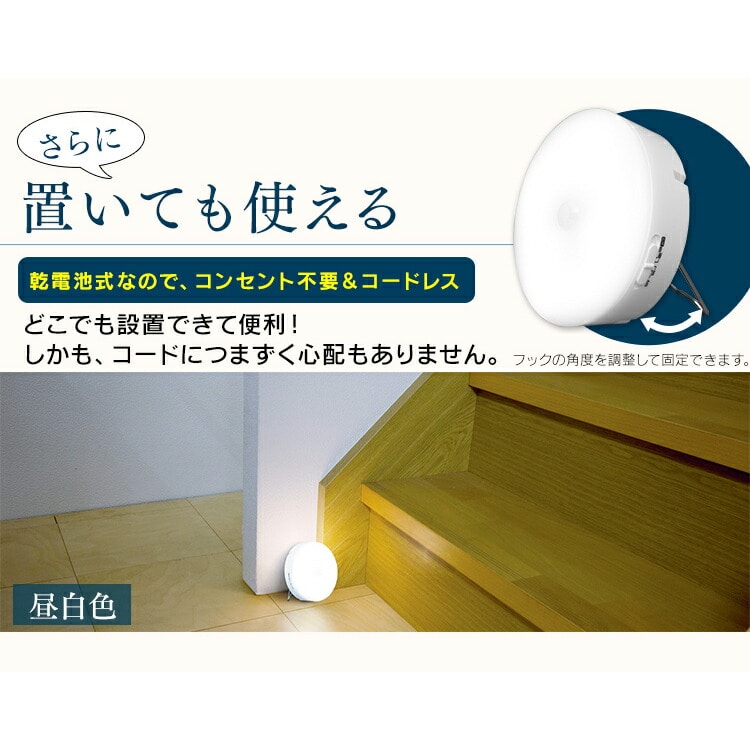 センサーが人の動きを感知して自動的に点灯する乾電池式LED室内センサーライトマルチタイプです。