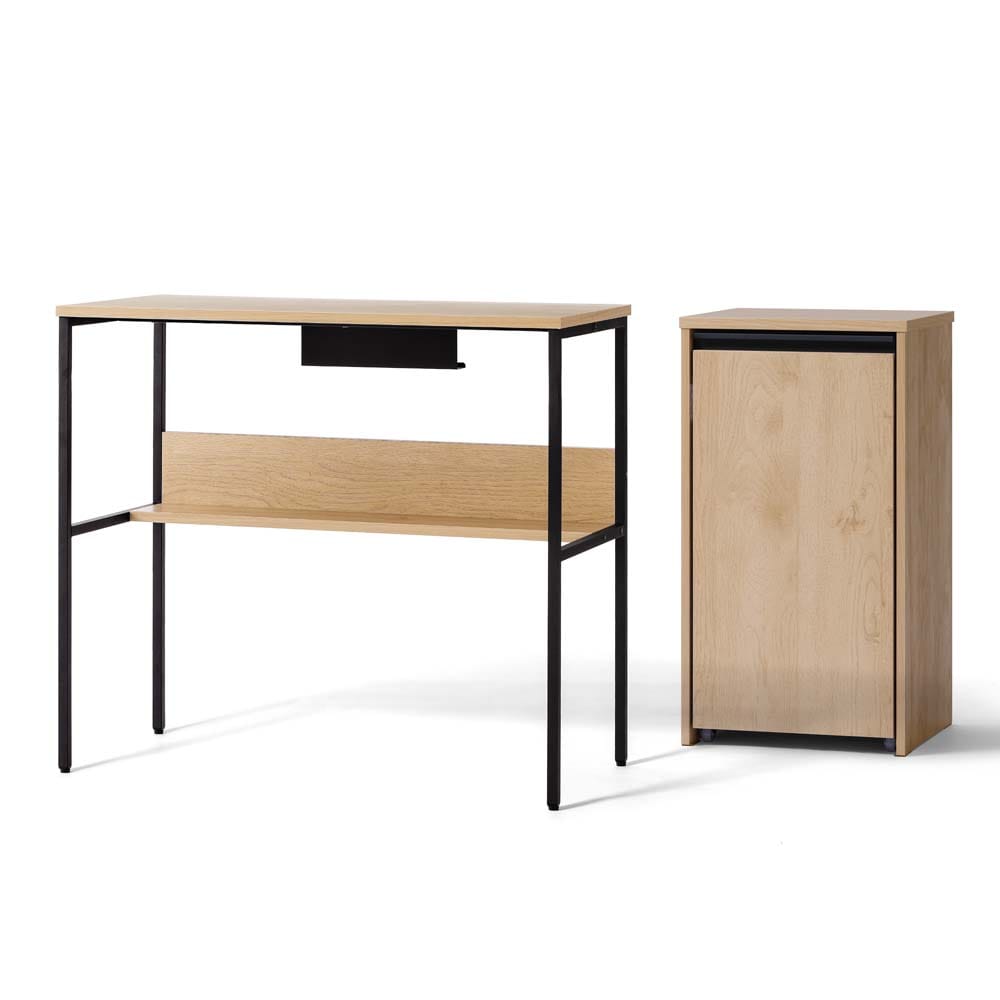 【リビングデスク HLVD-800 ナチュラル/ブラック】●商品サイズ(cm)幅約80.0×奥行約39.5×高さ約72.0●質量8.22kg●耐荷重天板:約20kg棚板:約5kg全体:約25kg●主要材質木製部分:プリント紙化粧パーティクルボードパイプ部品:金属(鋼)(エポキシ樹脂塗装)●必要工具+ドライバー(サイズ:2番)電動ドライバーの使用可※インパクトドライバーは使用しないでください。※耐荷重は測定値であり、保証値ではありません。※商品の仕様は予告なく変更する場合があります。【引き出し分別ダストワゴン HDW-350 ナチュラル/ブラック】●商品サイズ(cm)幅約33.8×奥行約29.6×高さ約61.5●耐荷重天板:約5kg棚板:約3kgワゴン:約5kg全体:約13kg●主要材質木製部:合成樹脂化粧パーティクルボード(メラミン樹脂)、プリント紙化粧パーティクルボード、プリント紙化粧繊維板金属部:金属(鋼)(エポキシ樹脂塗装)●質量約9.85kg●必要工具+ドライバー(サイズ:2番)電動ドライバーの使用可※インパクトドライバーは使用しないでください。※耐荷重は測定値であり、保証値ではありません。※商品の仕様は予告なく変更することがあります。