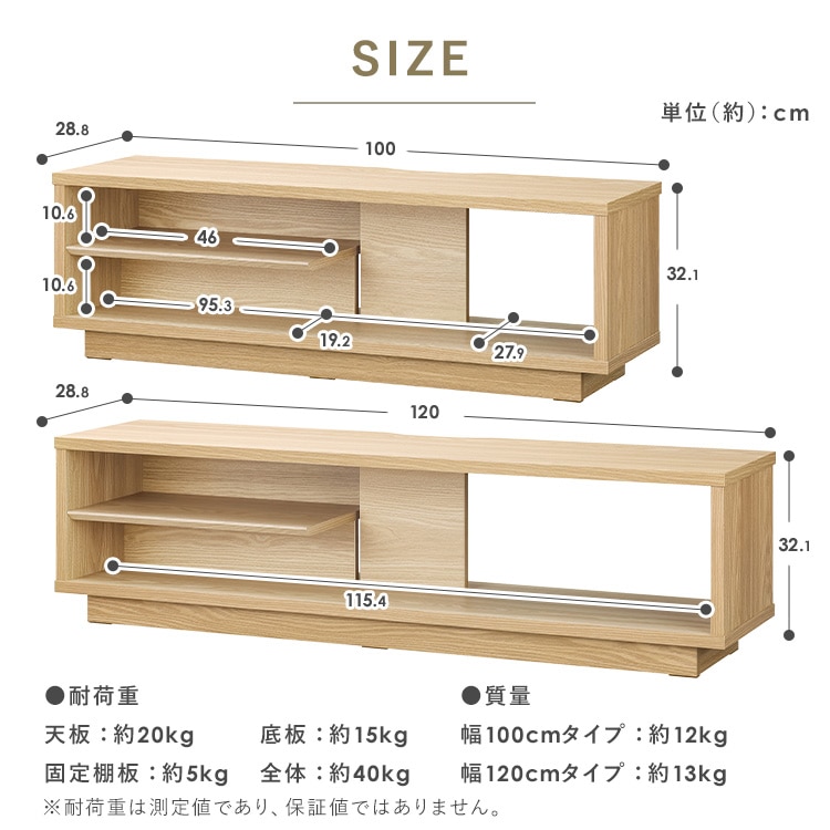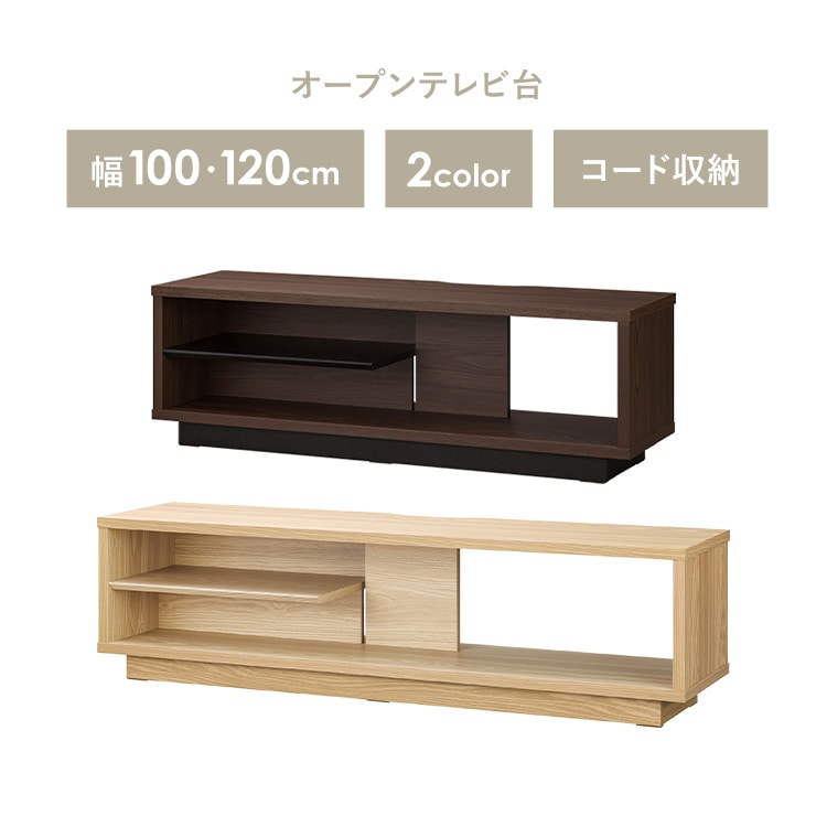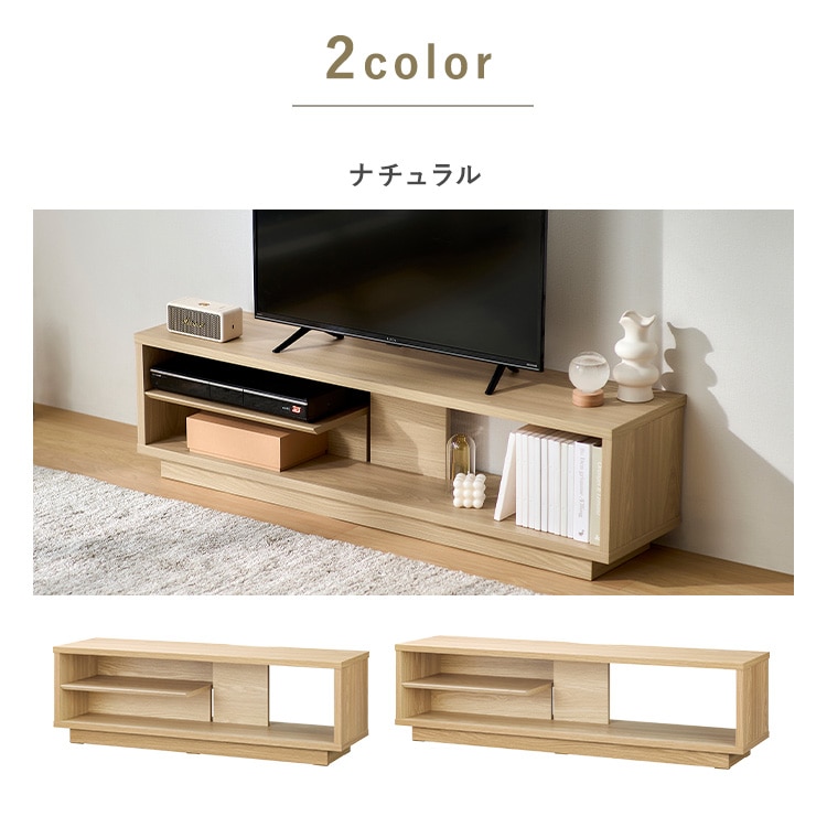 AV機器の設置に最適な棚板スペースと、背の高いWi-Fiルーターやゲーム機もすっきり収まるオープンスペース。