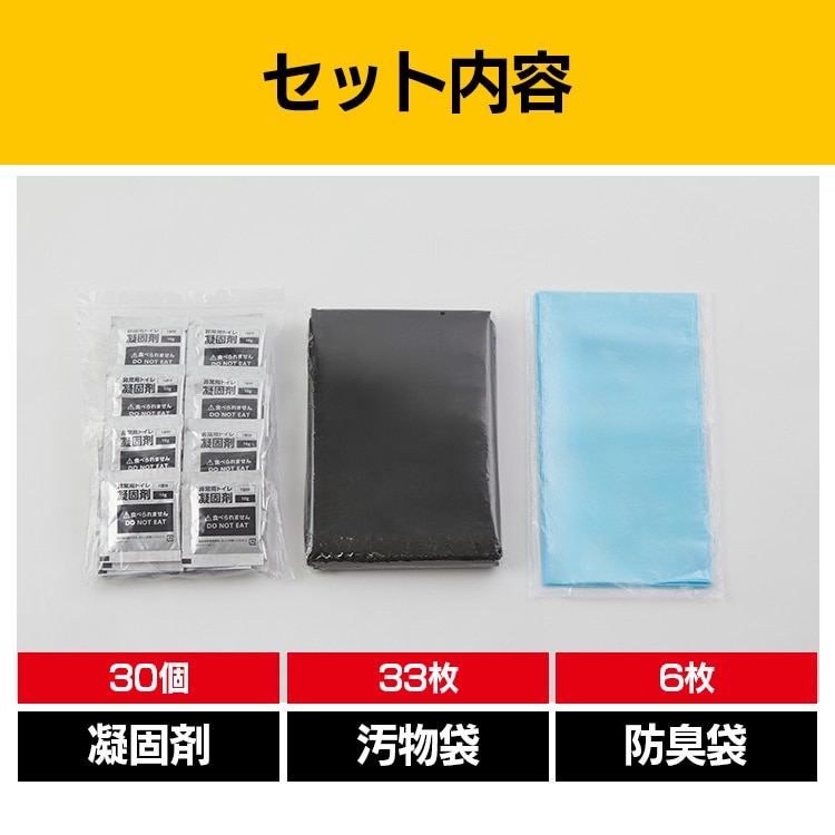 凝固剤×30、汚物袋×33、防臭袋×6(30回分)
